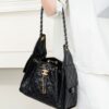 부드러운 가죽 소재로 제작되어 고급스러운 느낌을 주며, 퀼팅 디테일이 돋보입니다.