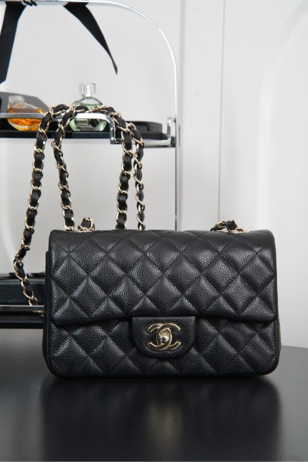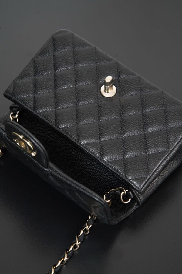 독특한 다이아몬드 패턴 디자인과 금속 체인 조합이 현대적인 감각을 더해줍니다. 1983년 출시 이후 전 세계적으로 사랑받아온 클래식 더블 C 잠금 장식이 특징입니다.