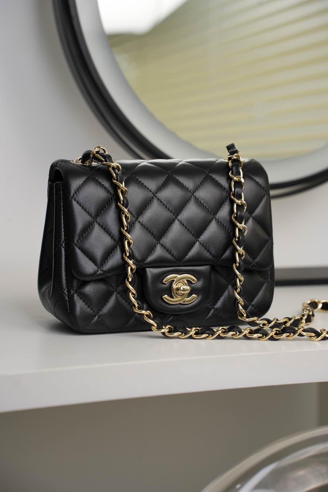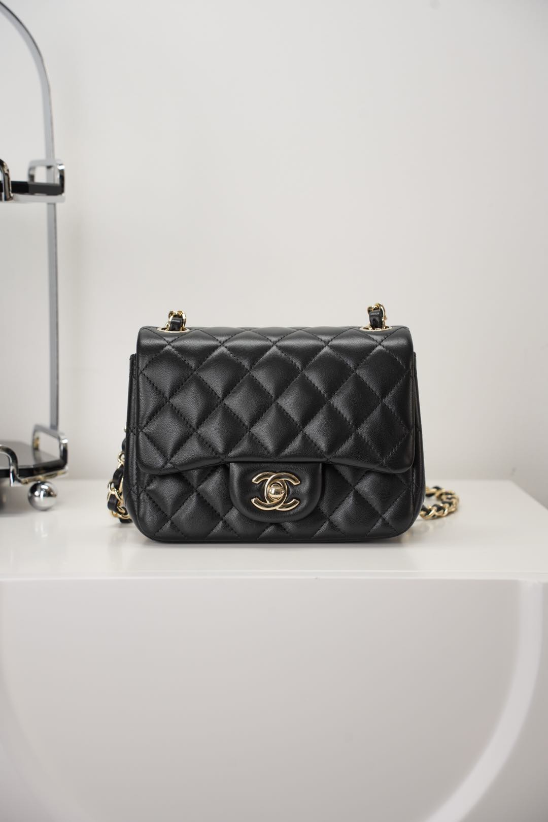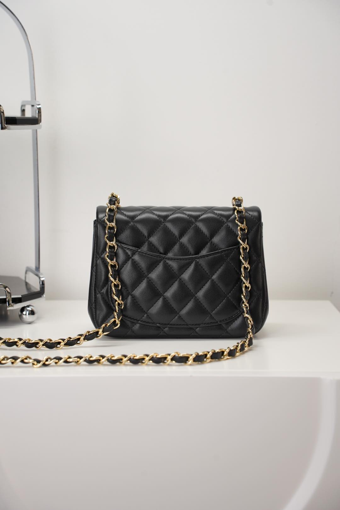 전통적인 다이아몬드 퀼팅 디자인과 금속 체인이 조화를 이루어, 빈티지하면서도 현대적인 매력을 동시에 지니고 있습니다.