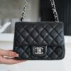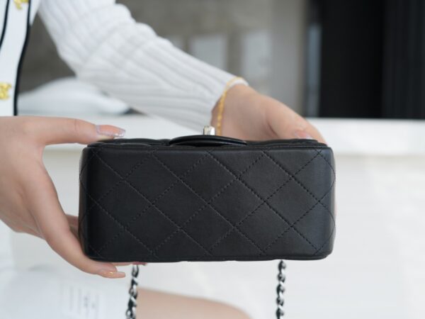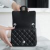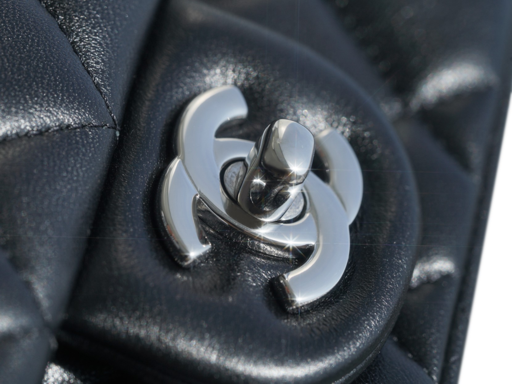 클래식한 다이아몬드 퀼팅 디자인과 금속 체인이 조화를 이루어 세련된 분위기를 자아냅니다.