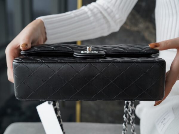부드러운 양가죽 소재로 제작된 클래식 플랩 백입니다. 섬세한 질감이 느껴지며, 고급스러운 느낌을 자아냅니다.