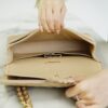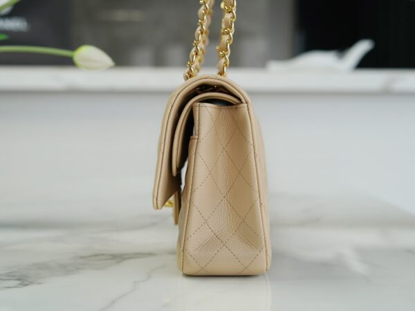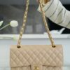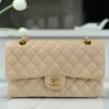 부드러운 캐비어 가죽으로 제작된 클래식 플랩 백입니다. 고급스러운 아이보리 색상은 어떤 스타일에도 잘 어울리며, 세련된 느낌을 더해줍니다.