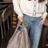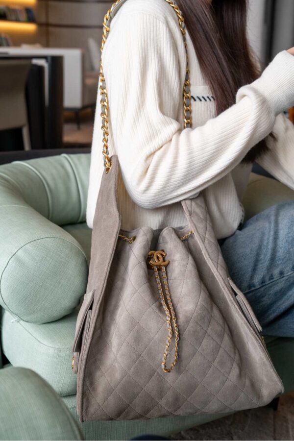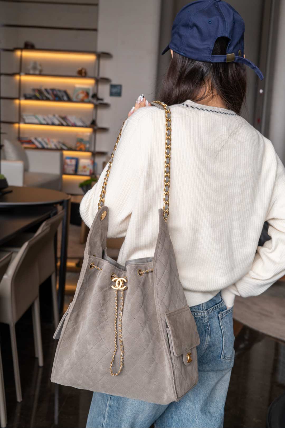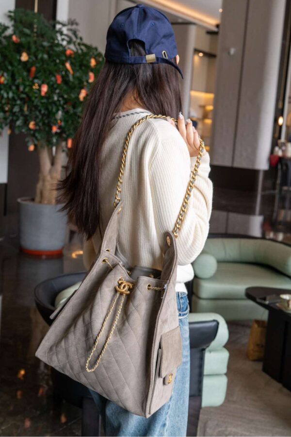 부드러운 스웨이드 소재로 제작된 호보백입니다. 고급스러운 느낌을 주며, 다양한 스타일에 잘 어울립니다.