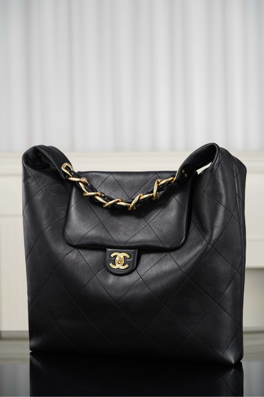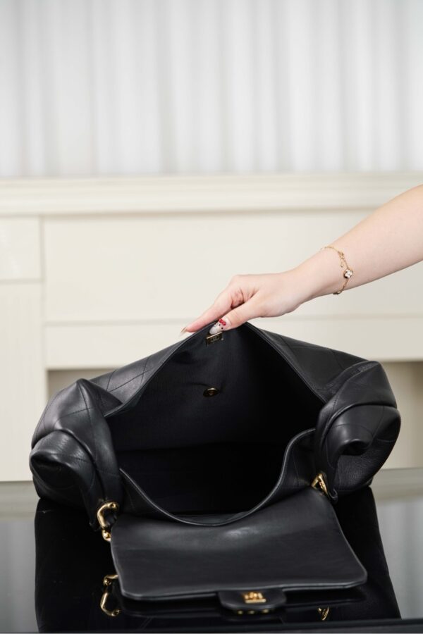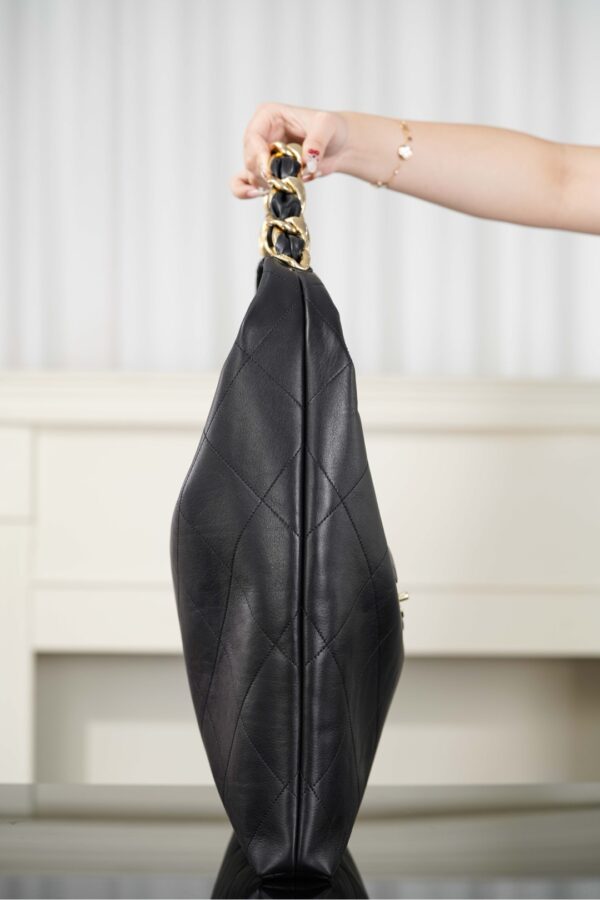 샤넬의 호보 맥시 백은 가을과 겨울 시즌에 완벽한 스타일을 제공합니다. 고급스러운 블랙 색상의 소가죽으로 제작되어 부드럽고 섬세한 질감을 자랑합니다.