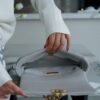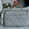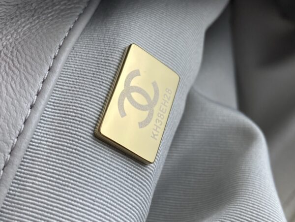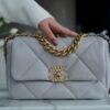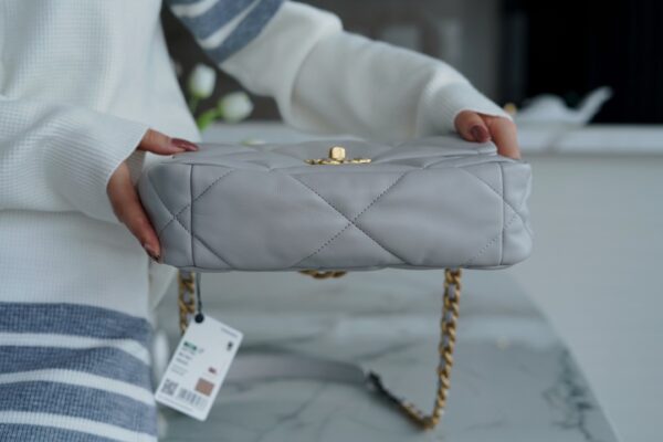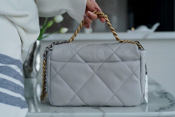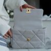 부드러운 연회색의 가죽으로 제작된 샤넬 19백은 고급스러운 느낌을 줍니다.