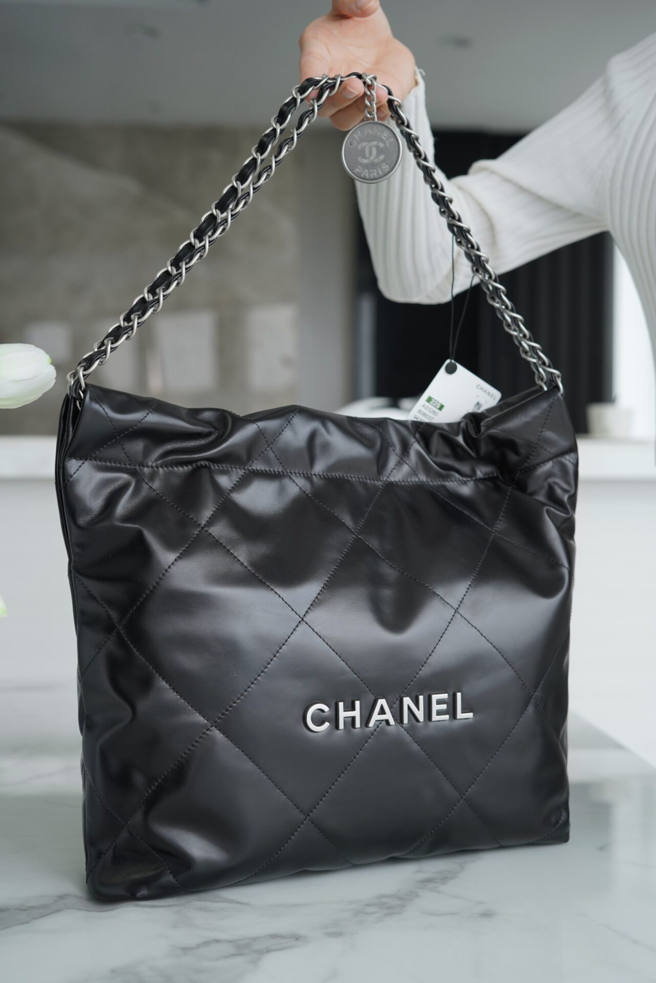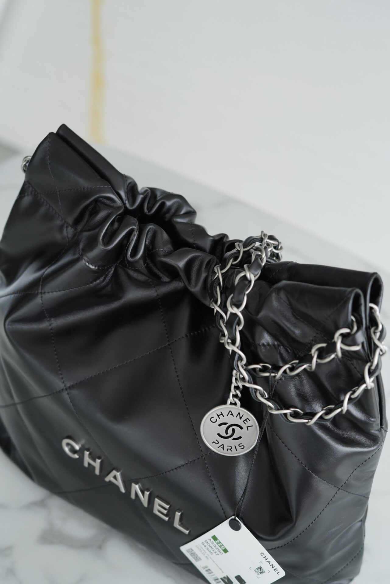 샤넬 (팬더) 22P 봄여름 신상 22 핸드백 스몰 블랙 실버버튼
