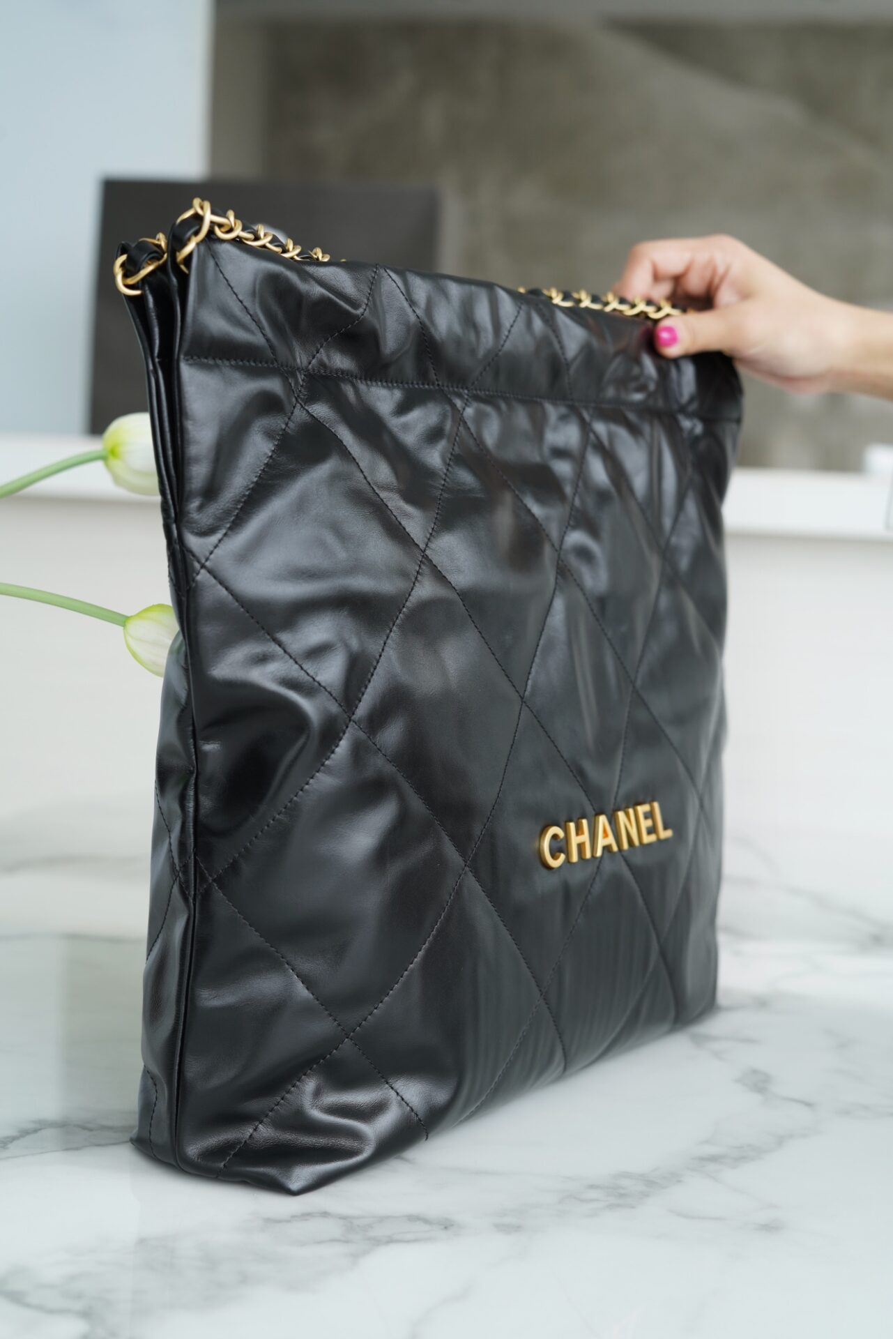 샤넬 (팬더) 22P 봄여름 신상 22 핸드백 중형 블랙 골드 샤넬 (팬더) 22P 봄여름 신상 22 핸드백 중형 블랙 골드
