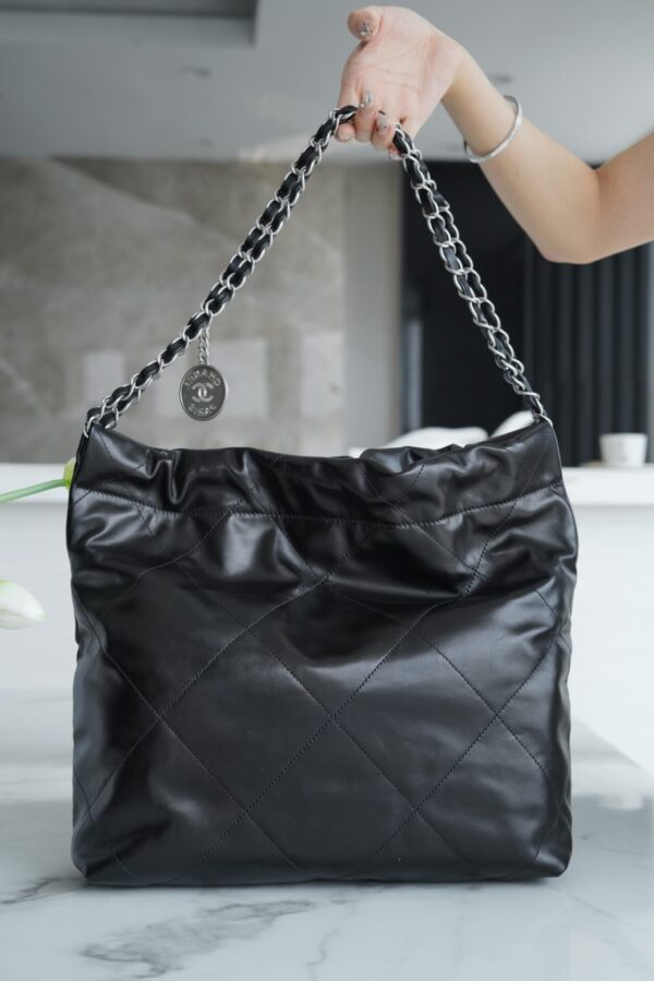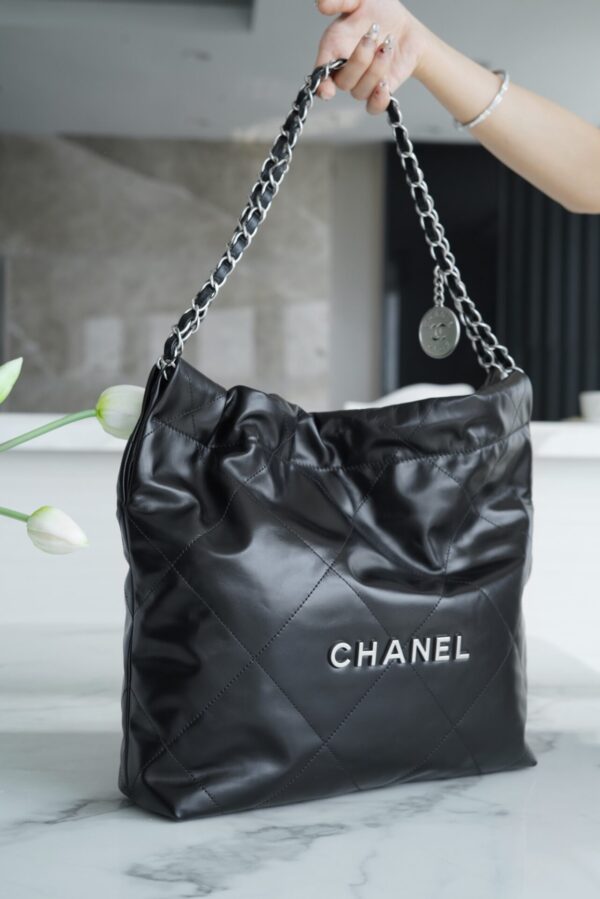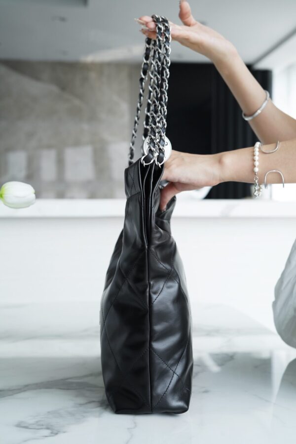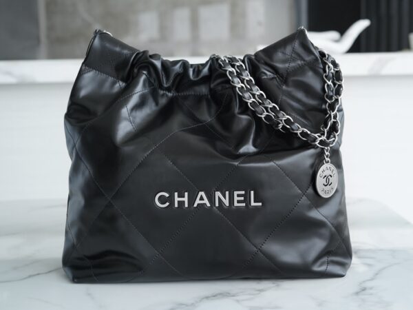 부드럽고 내구성이 뛰어난 1급 소가죽으로 제작된 샤넬 22P 스몰 백입니다.