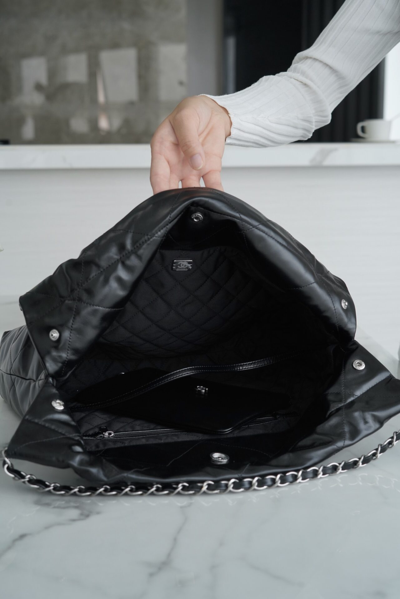 샤넬 (팬더) 22P 중형 블랙 실버 하드웨어 가방 샤넬 (팬더) 22P 중형 블랙 실버 하드웨어 가방