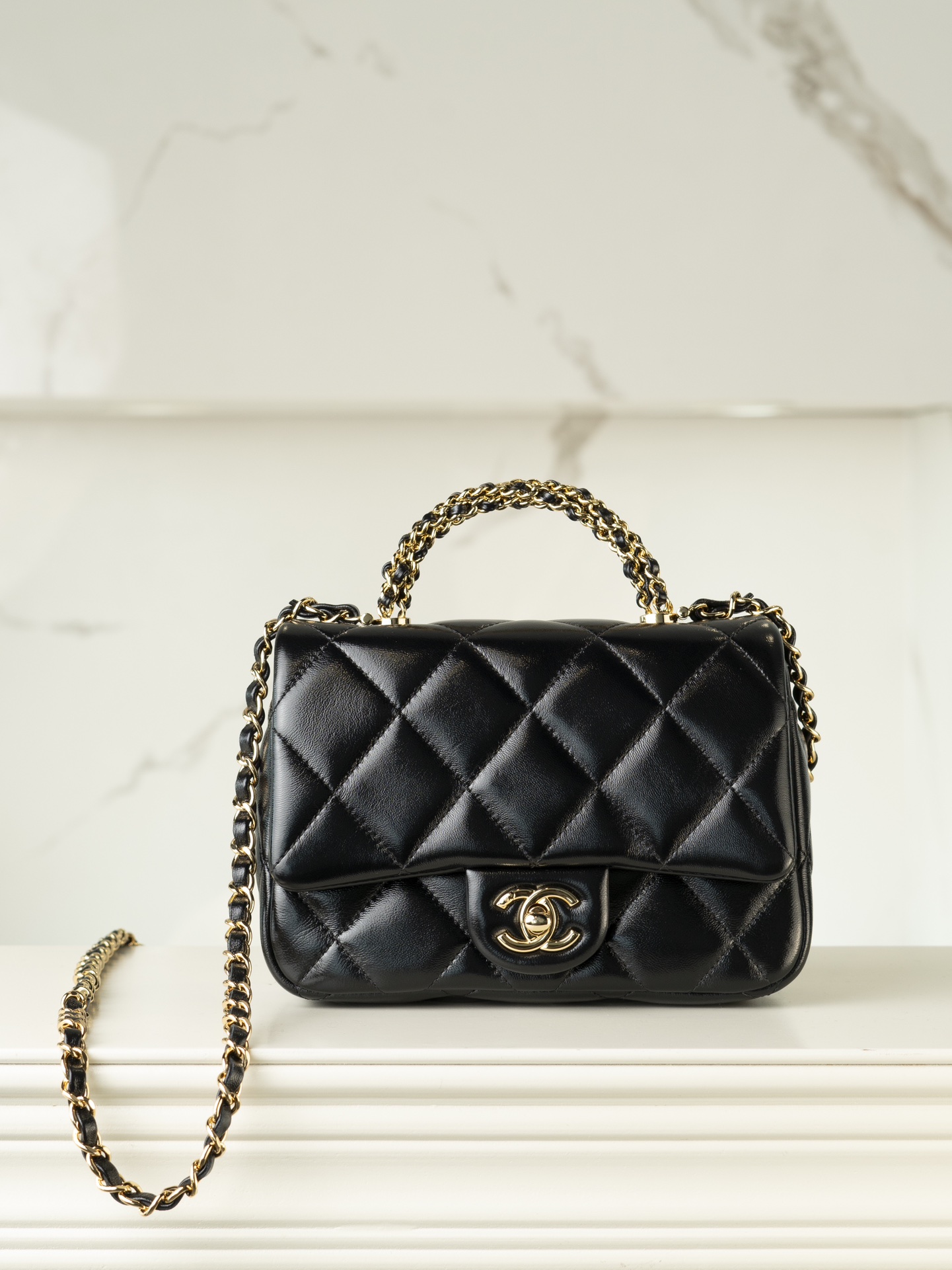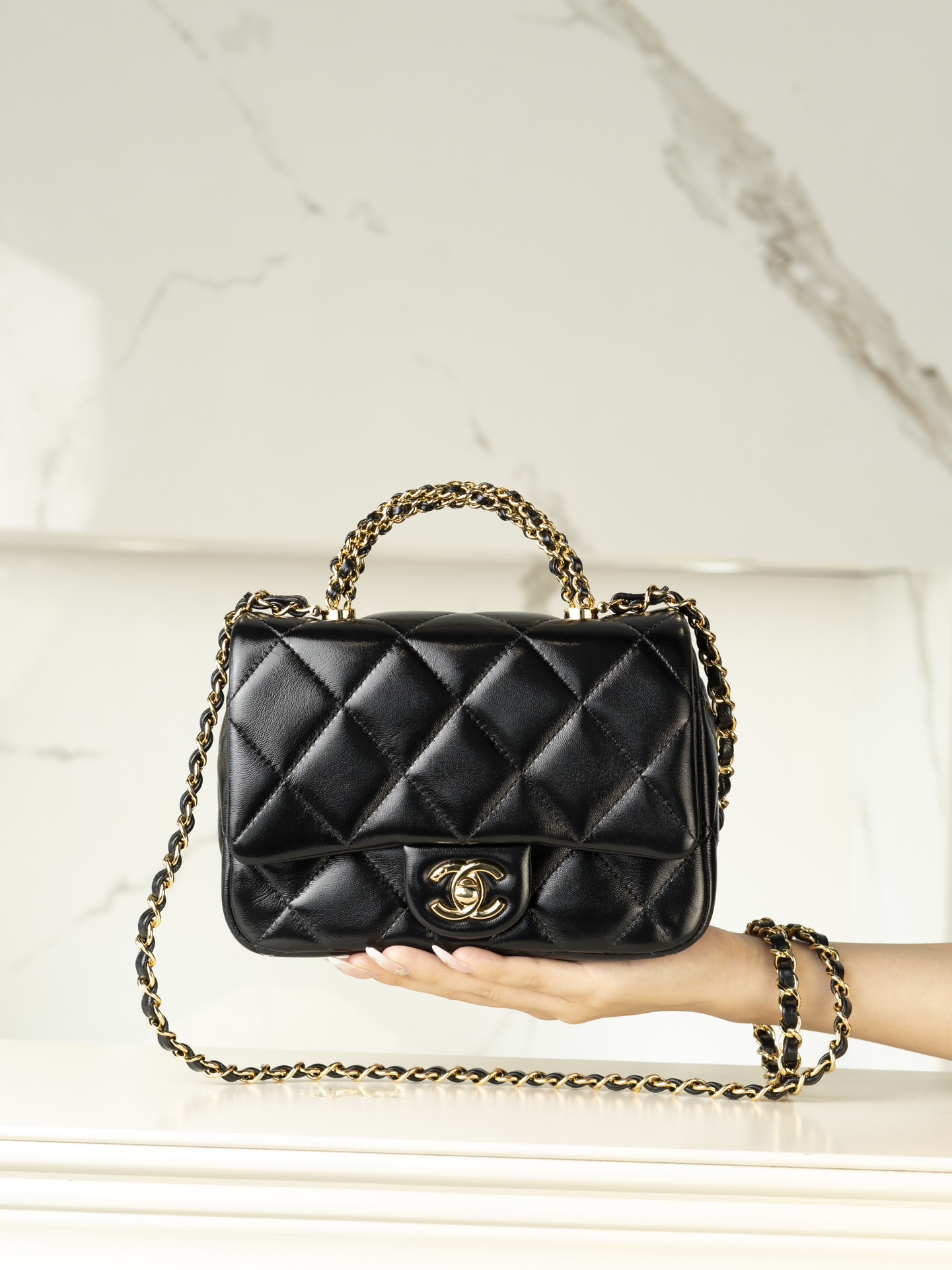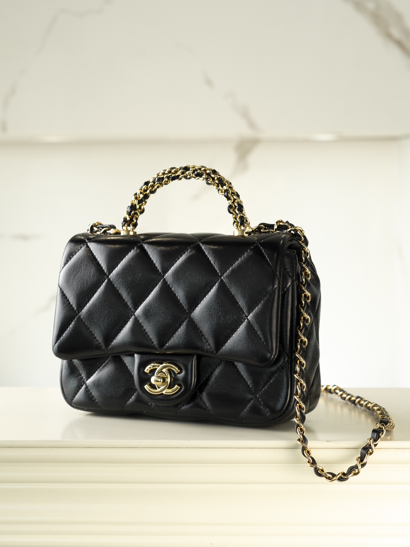 특징적인 ‘트위스트’ 형태의 금속 체인 손잡이는 세 개의 체인이 조합된 독특한 디자인으로, 각 체인은 수작업으로 다듬어져 더욱 특별한 느낌을 줍니다.