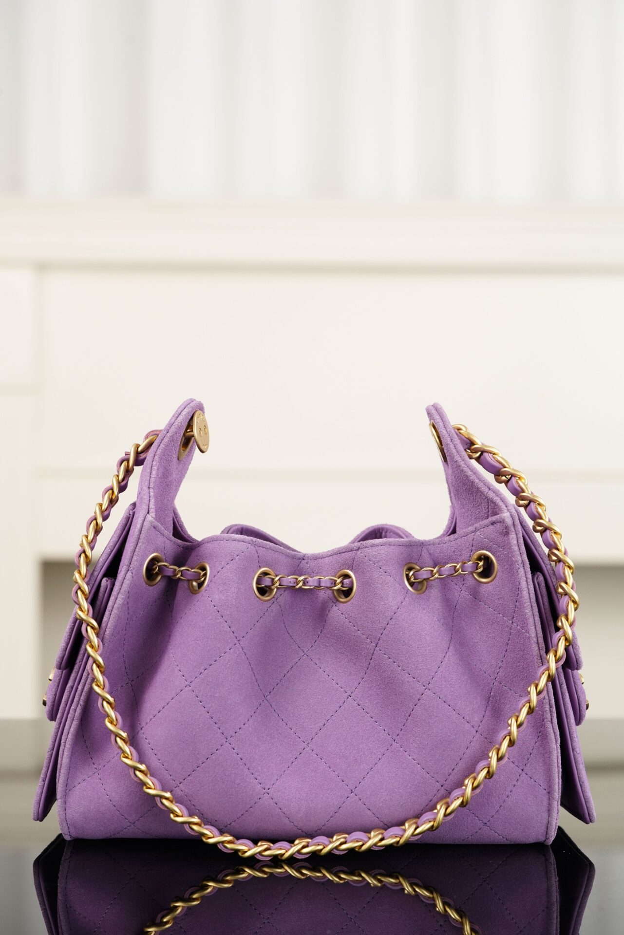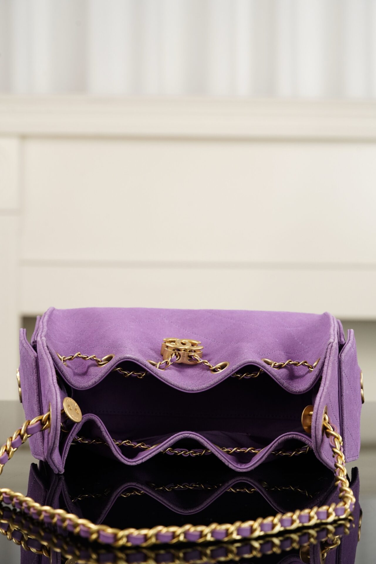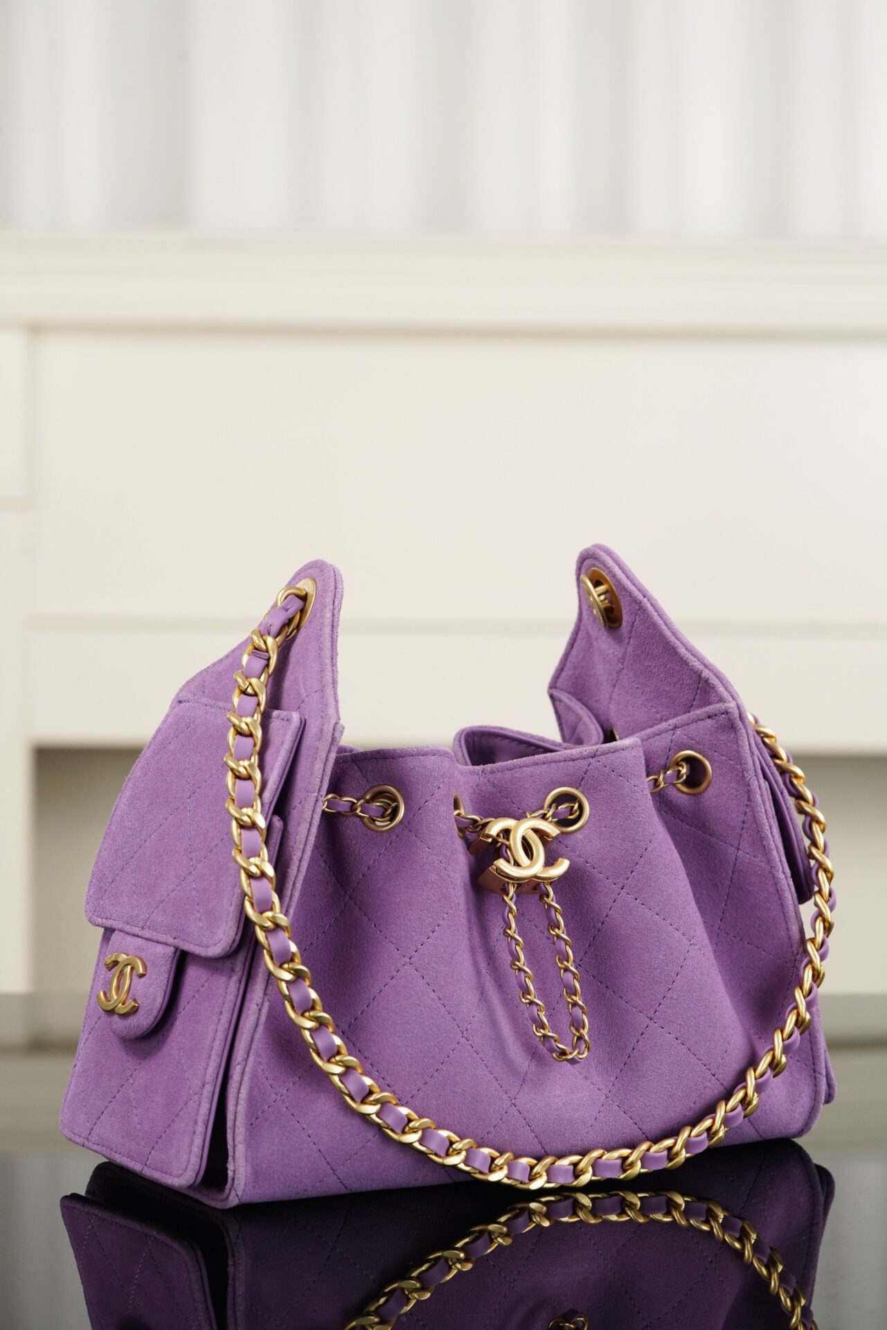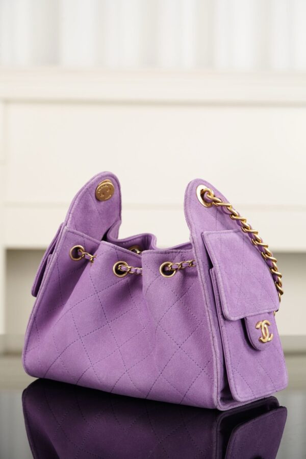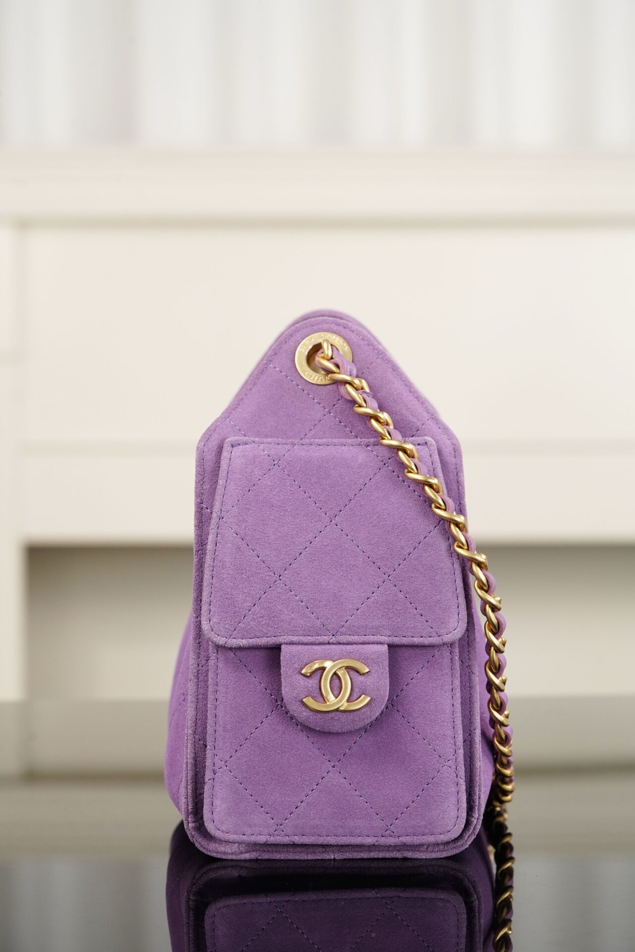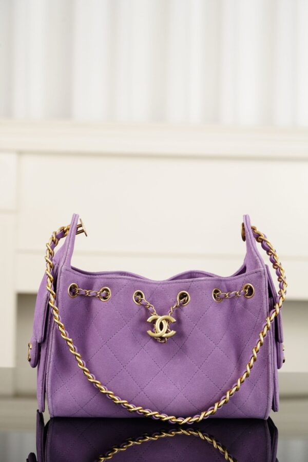 샤넬의 25백 미니는 화사한 퍼플 컬러로 봄과 여름에 어울리는 경쾌한 느낌을 줍니다.