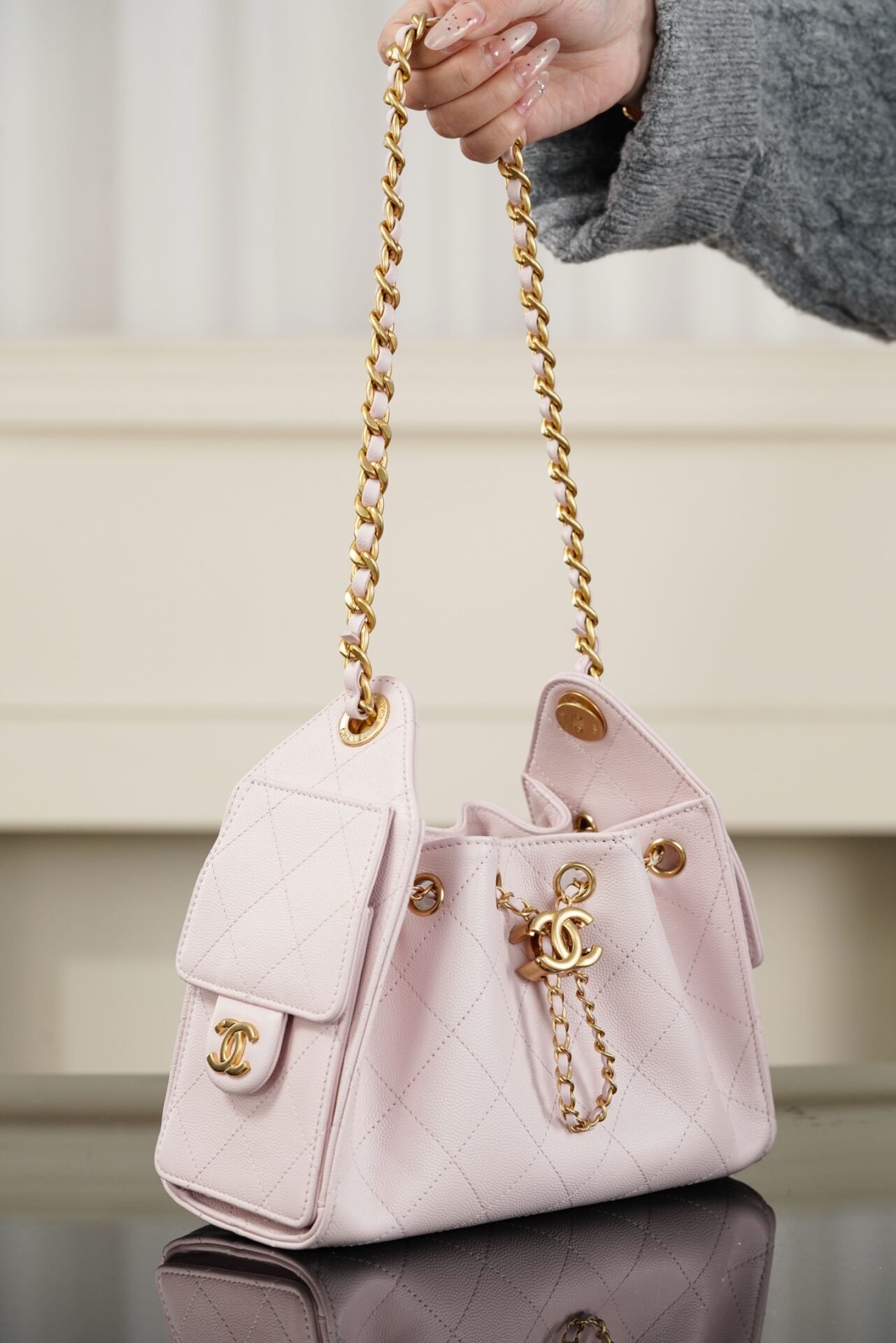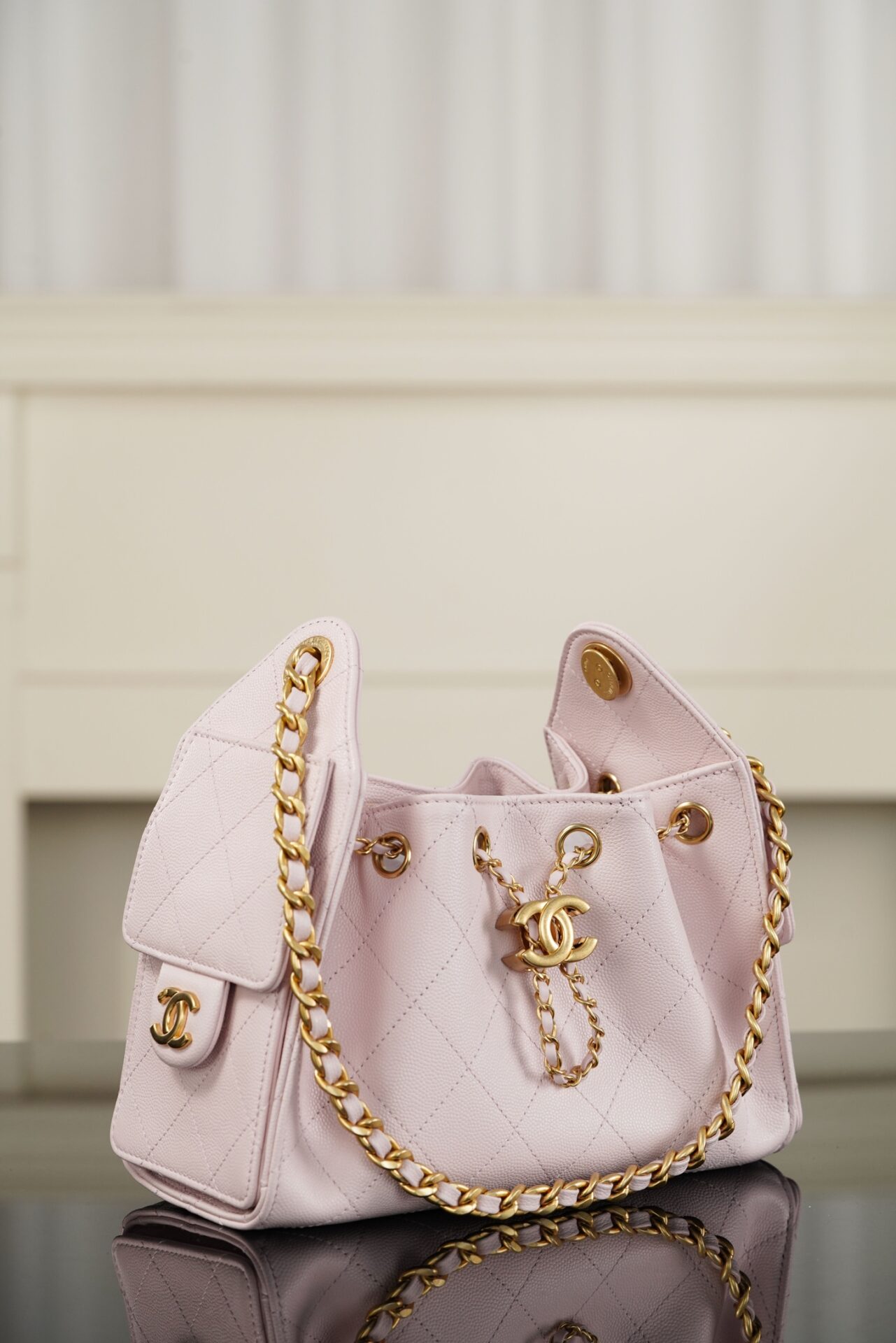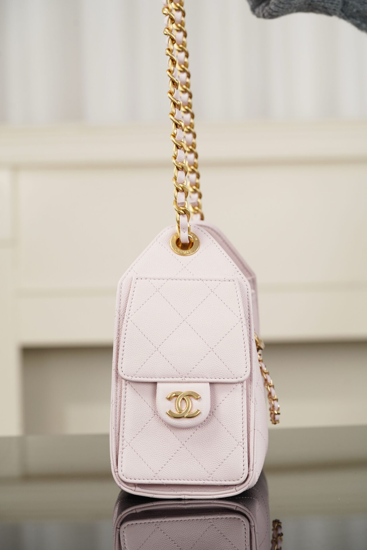 샤넬의 25백 미니백은 섬세한 캐비어 가죽으로 제작되어 고급스러운 질감을 자랑합니다.