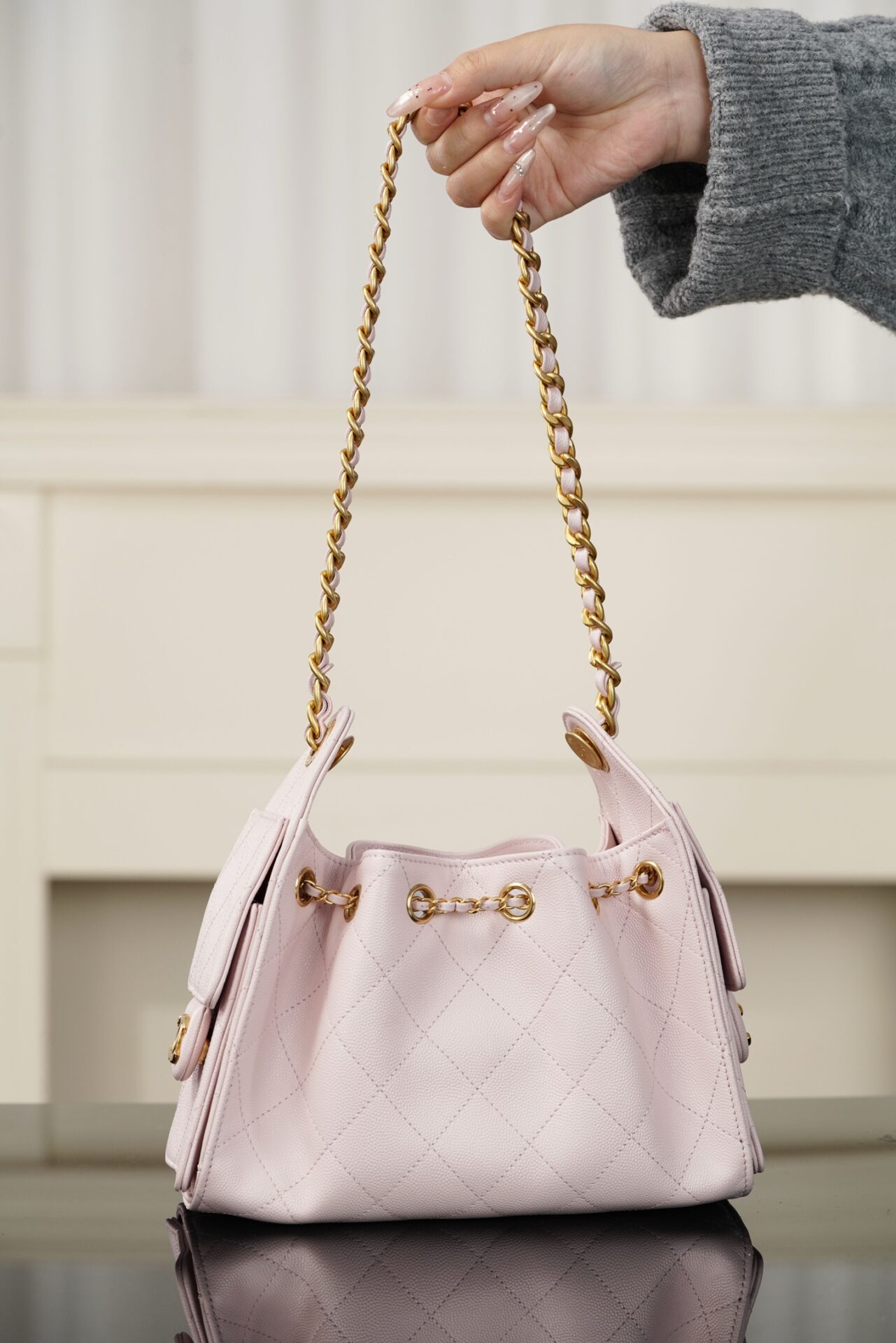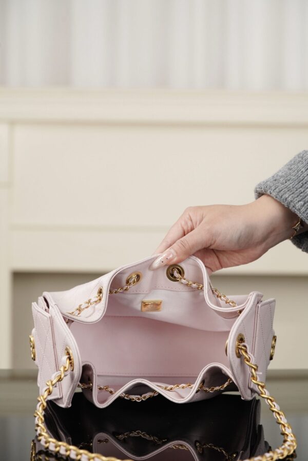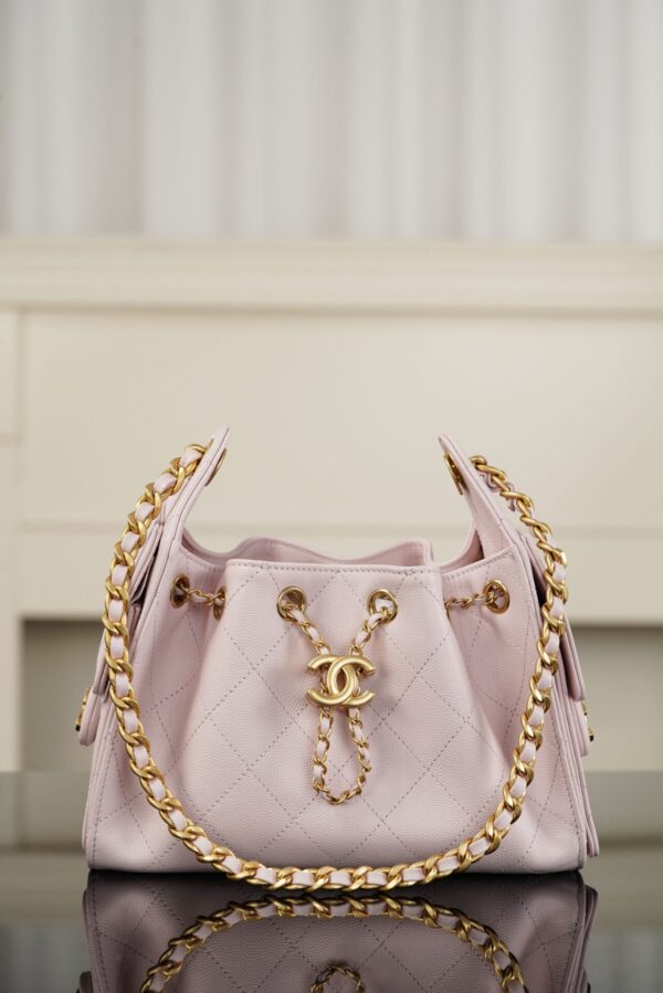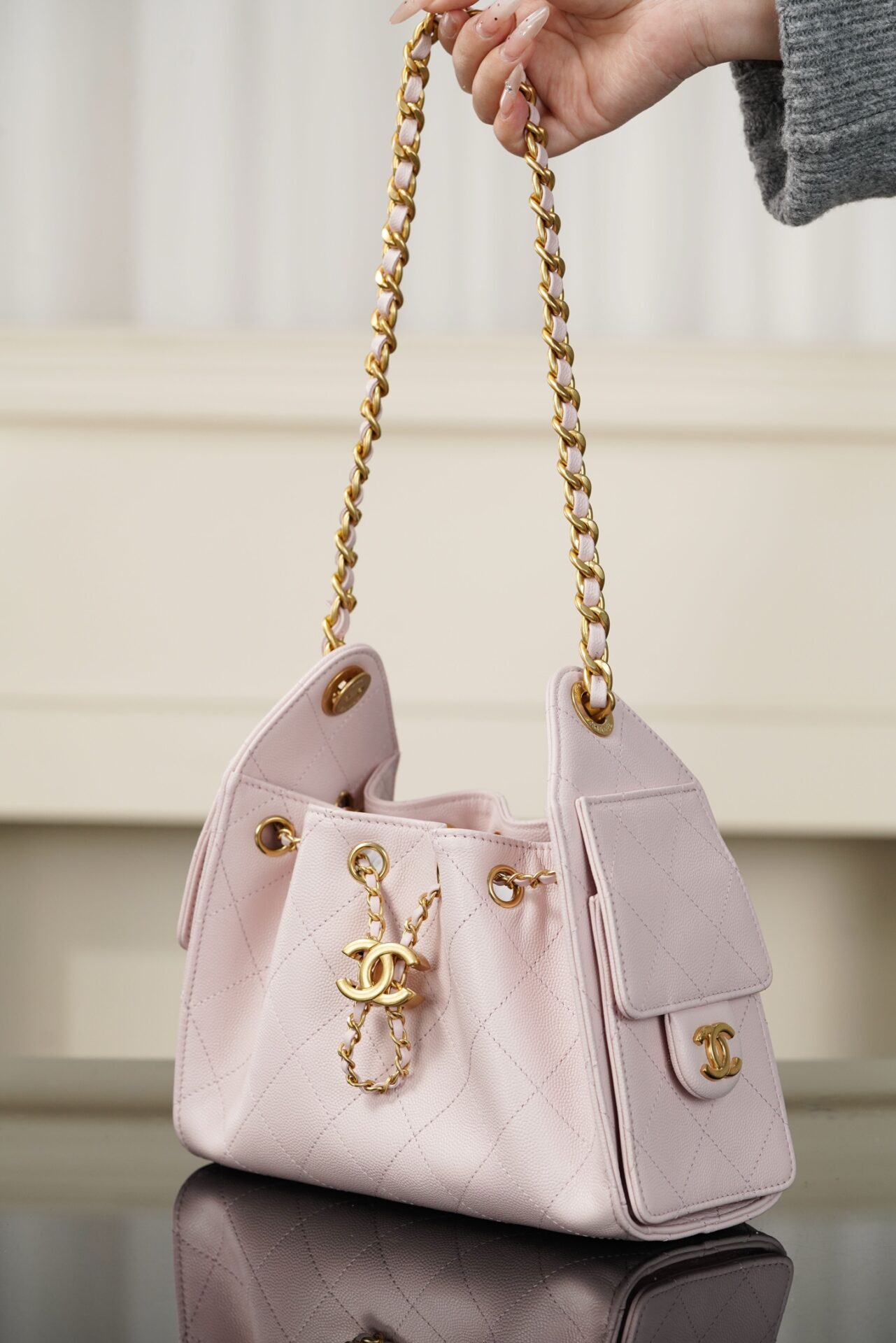 샤넬의 25백 미니백은 섬세한 캐비어 가죽으로 제작되어 고급스러운 질감을 자랑합니다.