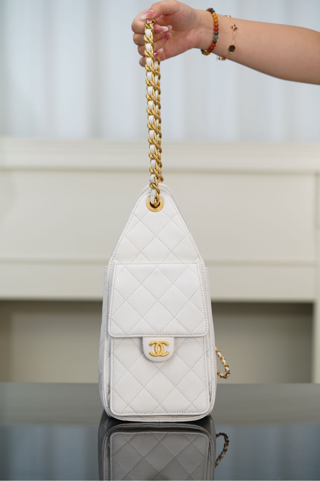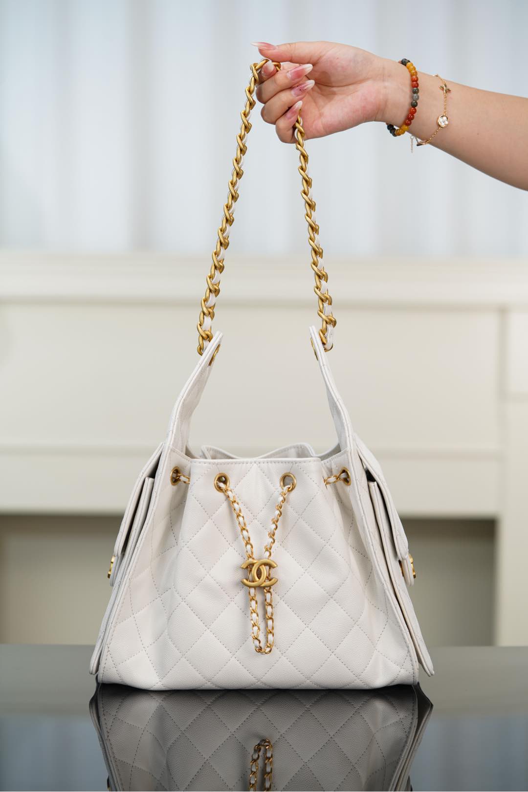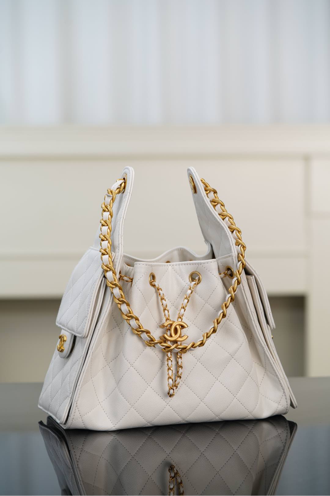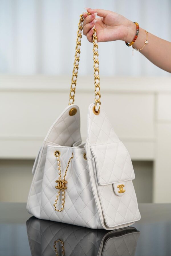 샤넬 (팬더) 25스몰 호보 화이트 캐비어 가죽 백 샤넬 (팬더) 25스몰 호보 화이트 캐비어 가죽 백