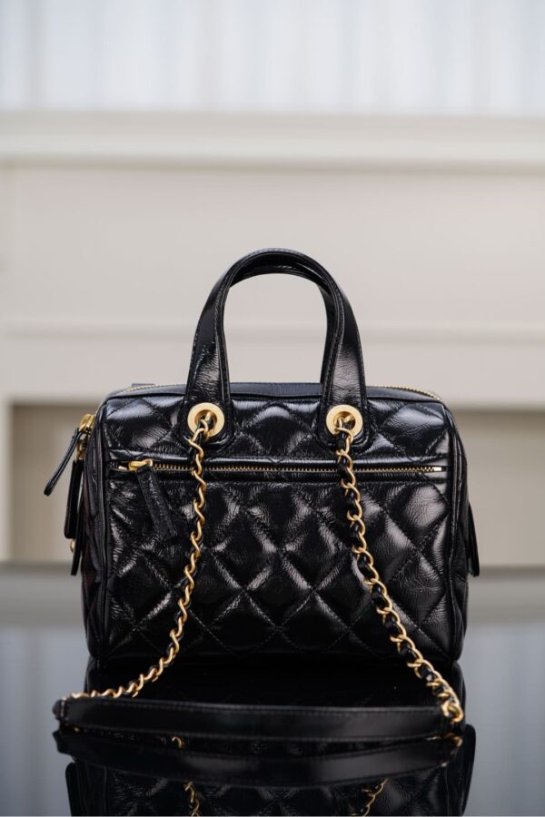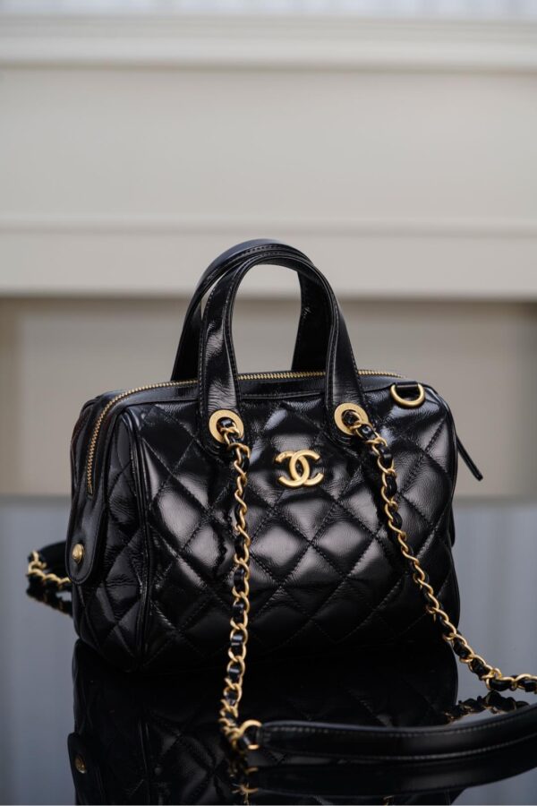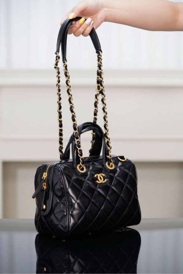 샤넬 25A 수제 볼링백은 매력과 여행, 꿈을 담아낸 디자인으로, 우아한 블랙 컬러가 돋보입니다.
