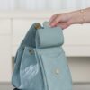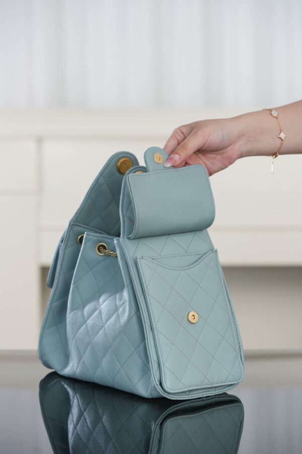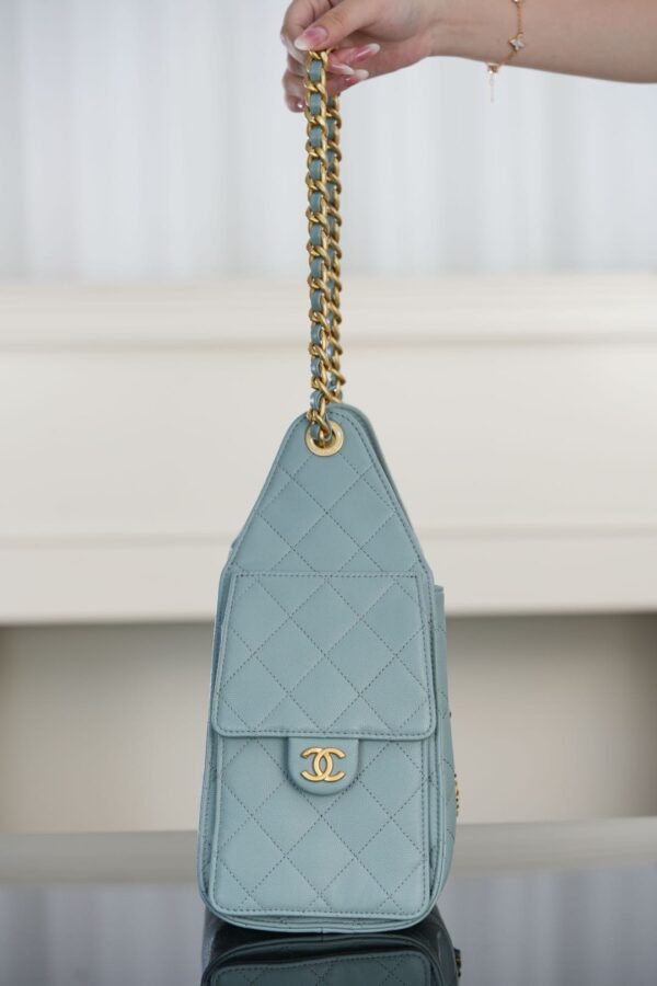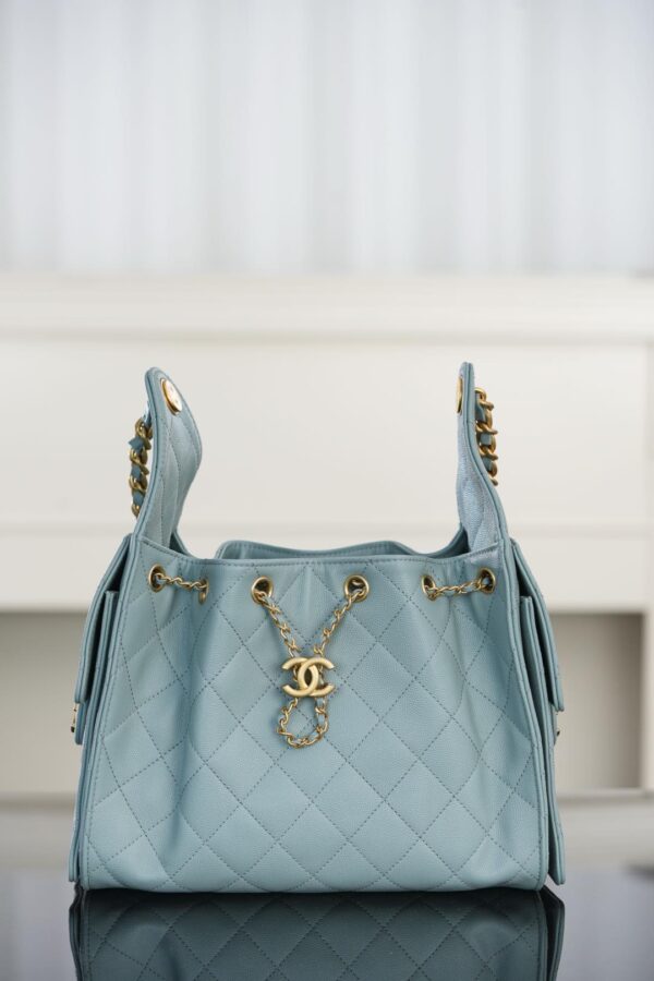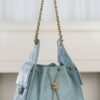 이번 시즌의 핫 아이템, 25a 스몰 호보백입니다. 물안개 블루 색상은 시선을 사로잡는 매력을 지니고 있습니다.