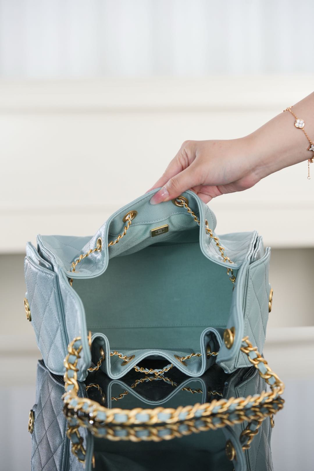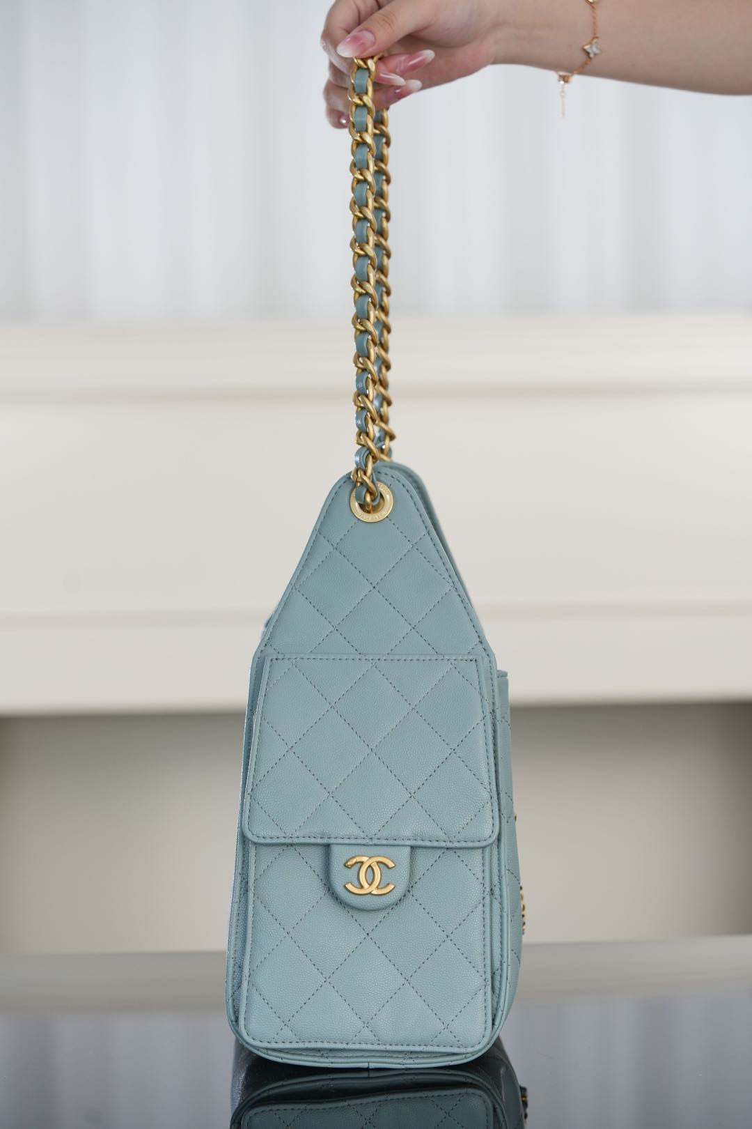 이번 시즌의 핫 아이템, 25a 스몰 호보백입니다. 물안개 블루 색상은 시선을 사로잡는 매력을 지니고 있습니다.