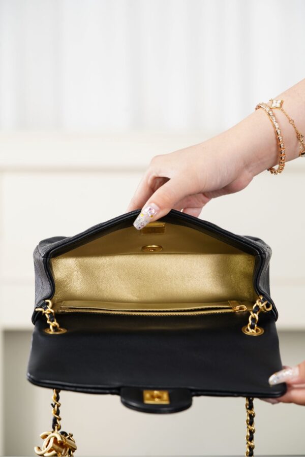 샤넬의 25B 더블 C 체인 CF 미니백은 우아하면서도 실용적인 디자인으로, 매일의 스타일에 완벽하게 어울립니다.