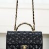 소가죽으로 제작되어 부드러운 촉감과 내구성을 자랑합니다. 핸들 부분의 더블 C 금속 장식이 고급스러움을 더하며, 손에 쥐었을 때의 편안한 그립감이 돋보입니다.