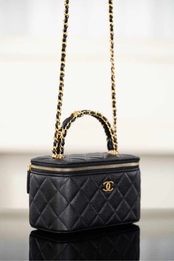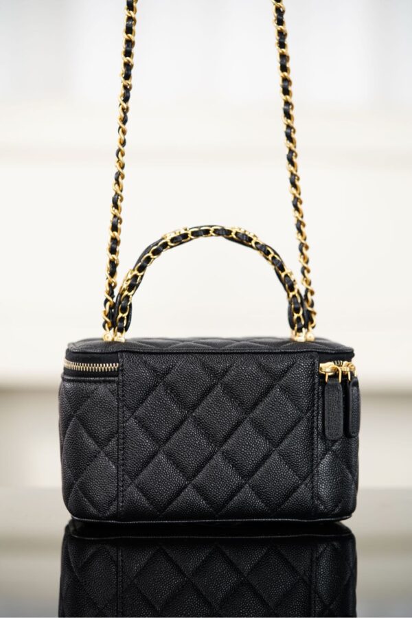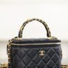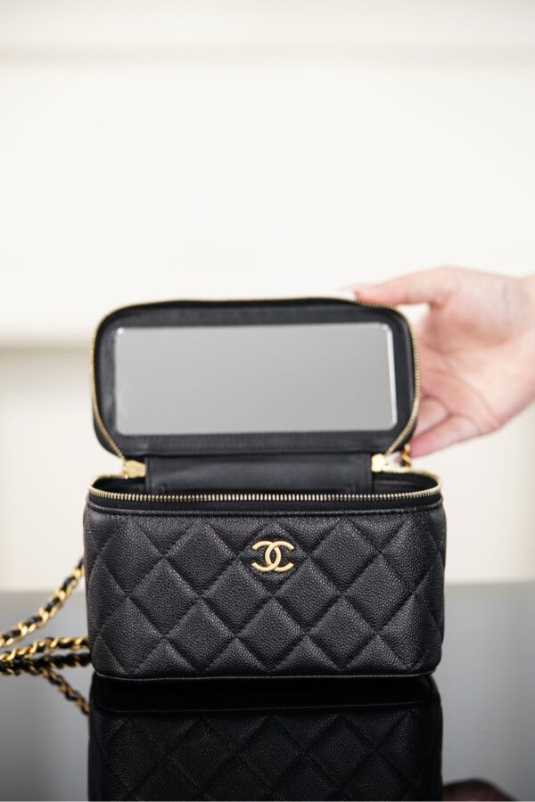 샤넬 25B VANITY 시리즈 화장盒는 클래식한 디자인으로, 정사각형의 깔끔한 실루엣과 전통적인 다이아몬드 패턴이 매력적입니다.