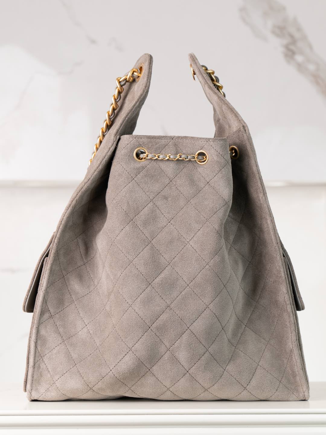 대형 사이즈로 실용성이 뛰어나며, 편안한 착용감을 제공합니다. 독특한 디자인의 더블 C 금속 장식이 포인트가 되어 세련된 느낌을 더합니다.