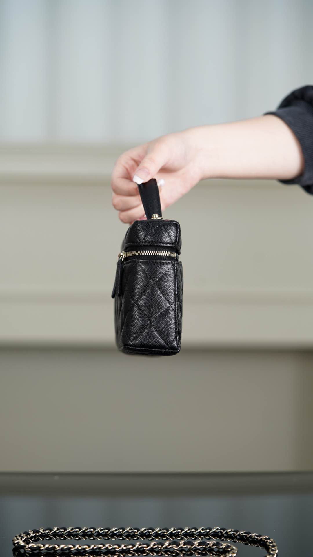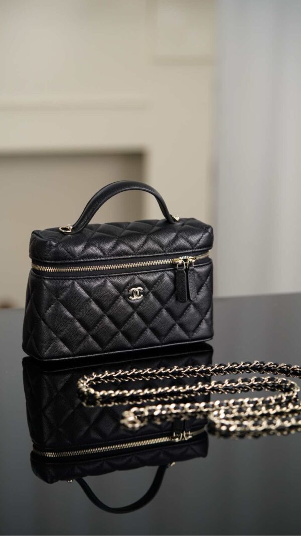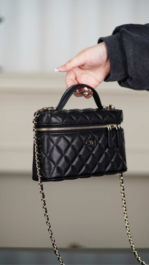 샤넬의 25C 신상 도시락백은 블랙과 골드의 조화가 매력적인 아이템입니다.