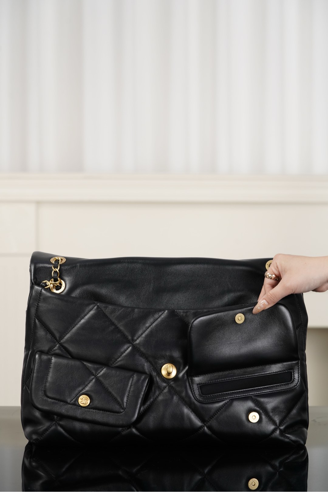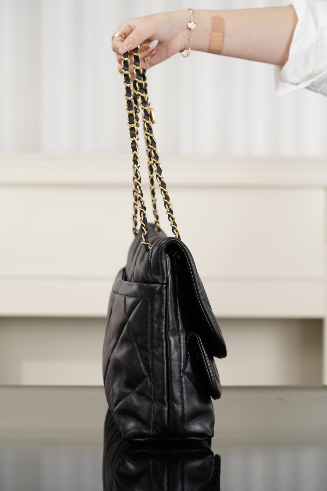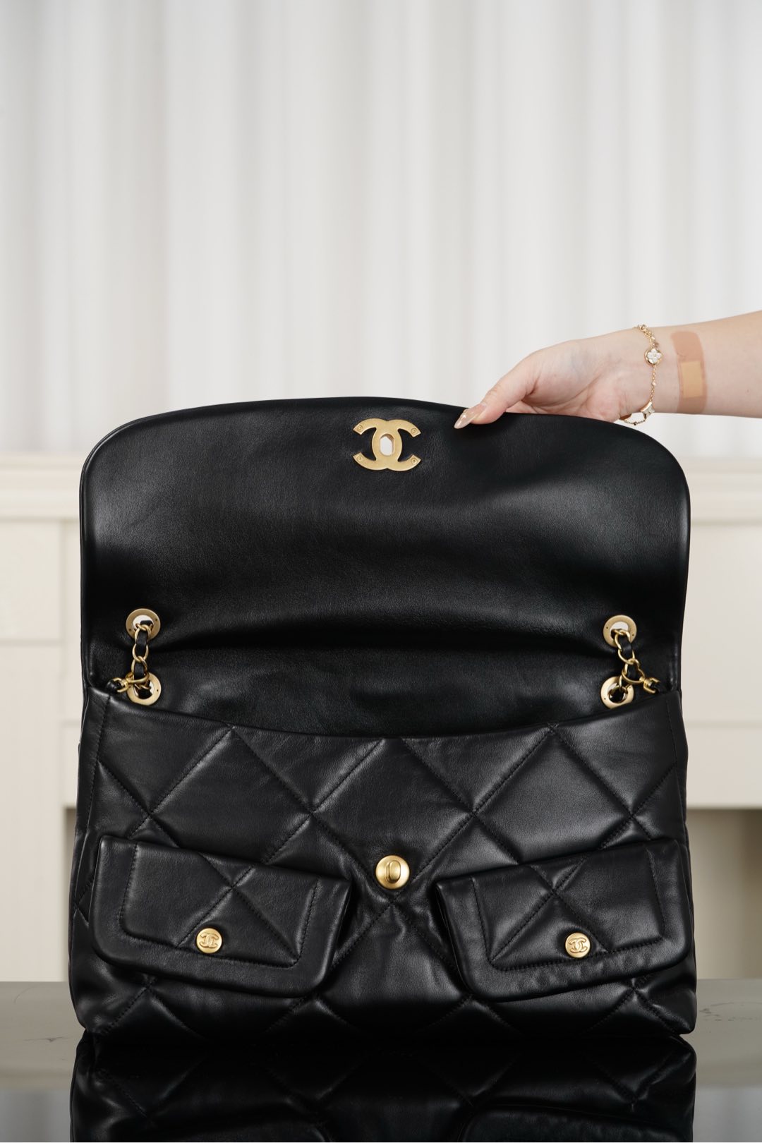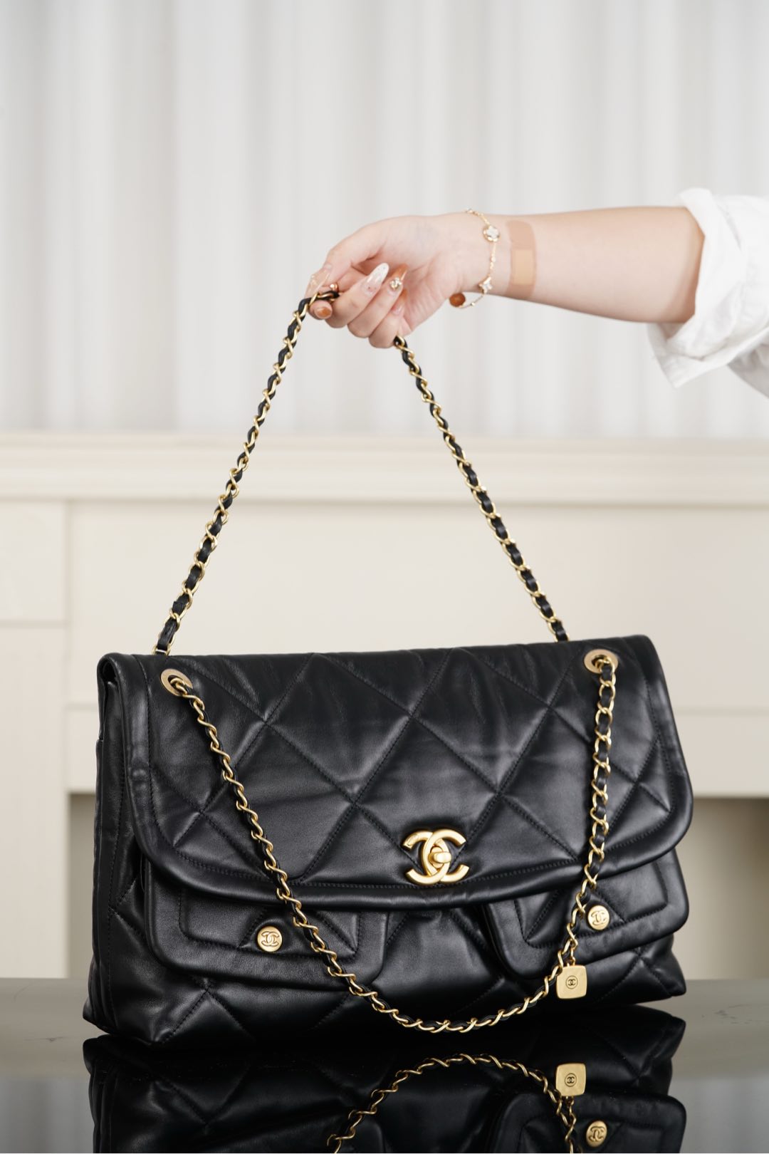 상징적인 체인 스트랩과 ‘더블 C’ 참 장식이 더해져 우아함을 더합니다.