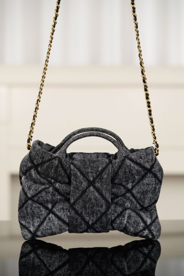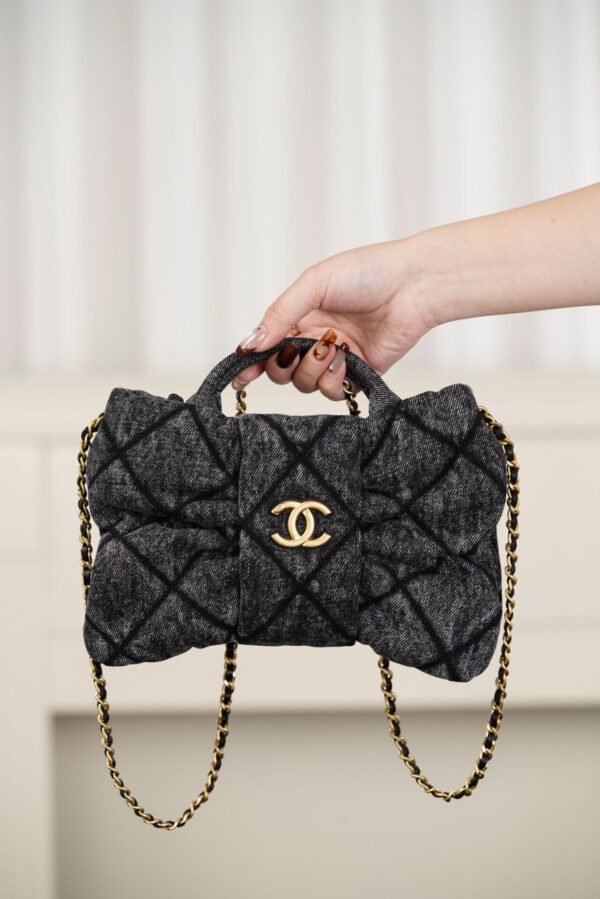 이 가방은 클래식한 샤넬의 퀼팅 디자인을 바탕으로 하여 캐주얼하면서도 달콤한 매력을 발산합니다. 리본이 주인공이 되어 스타일을 한층 업그레이드해 줍니다.