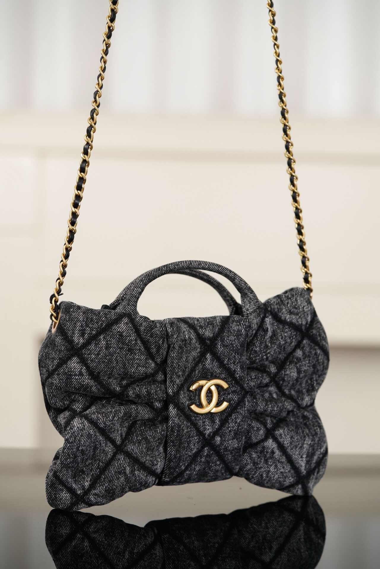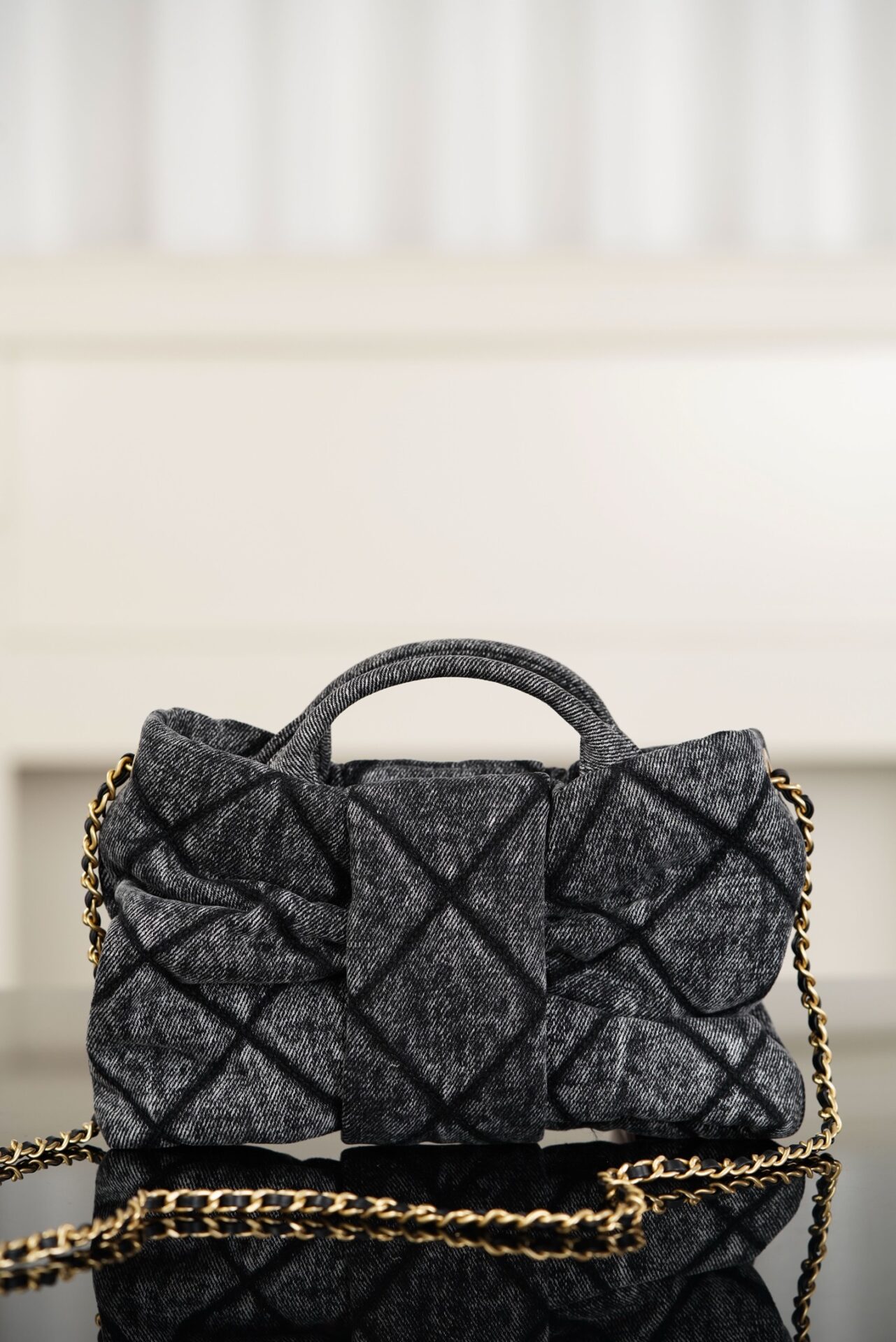 샤넬의 25K 리본 핸드백은 사랑스러운 리본 디자인이 특징입니다. 블랙 소가죽으로 제작되어 고급스러움과 내구성을 동시에 갖추고 있습니다.