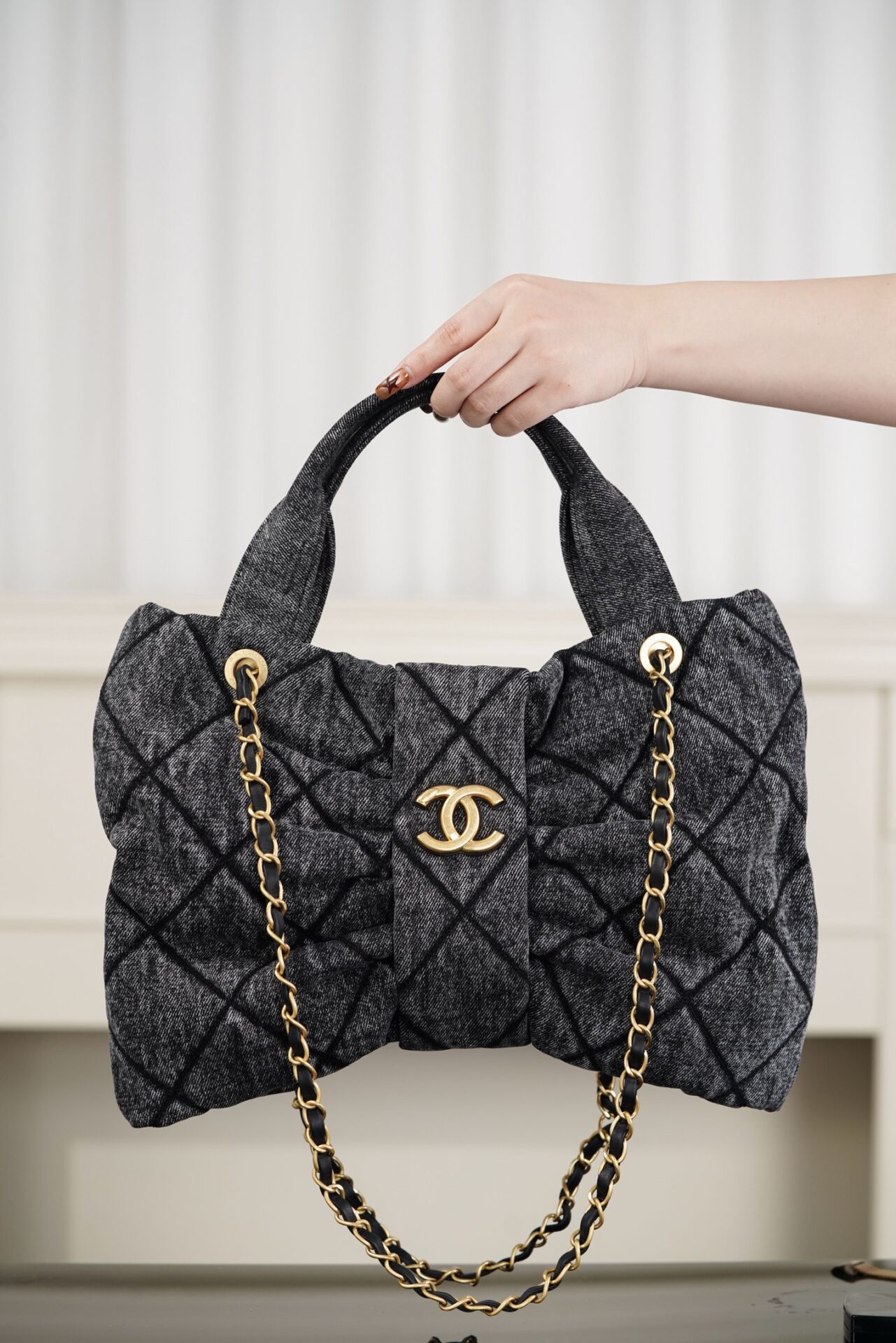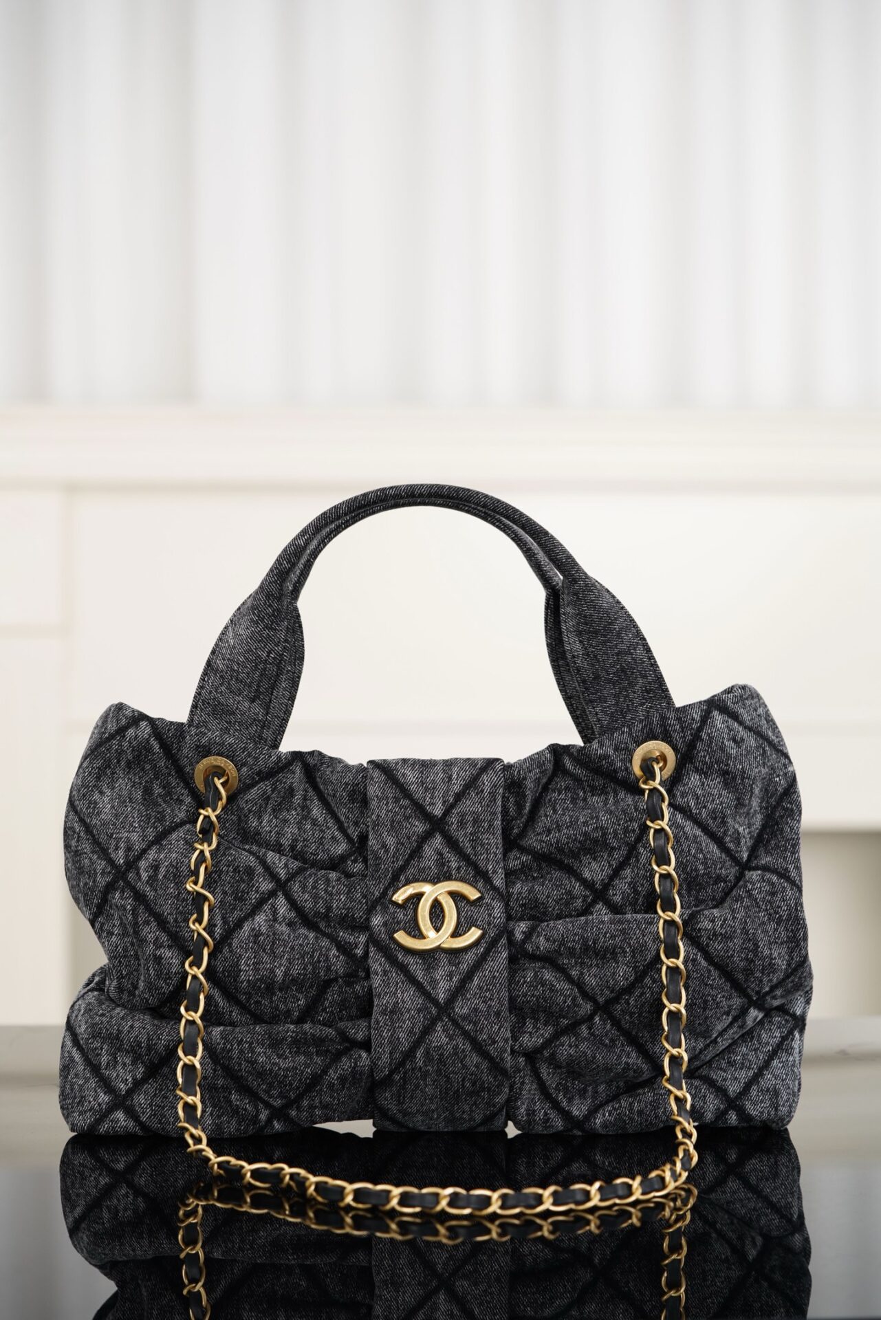샤넬의 25K 리본 핸드백은 사랑스러운 리본 디테일이 돋보이는 제품입니다.