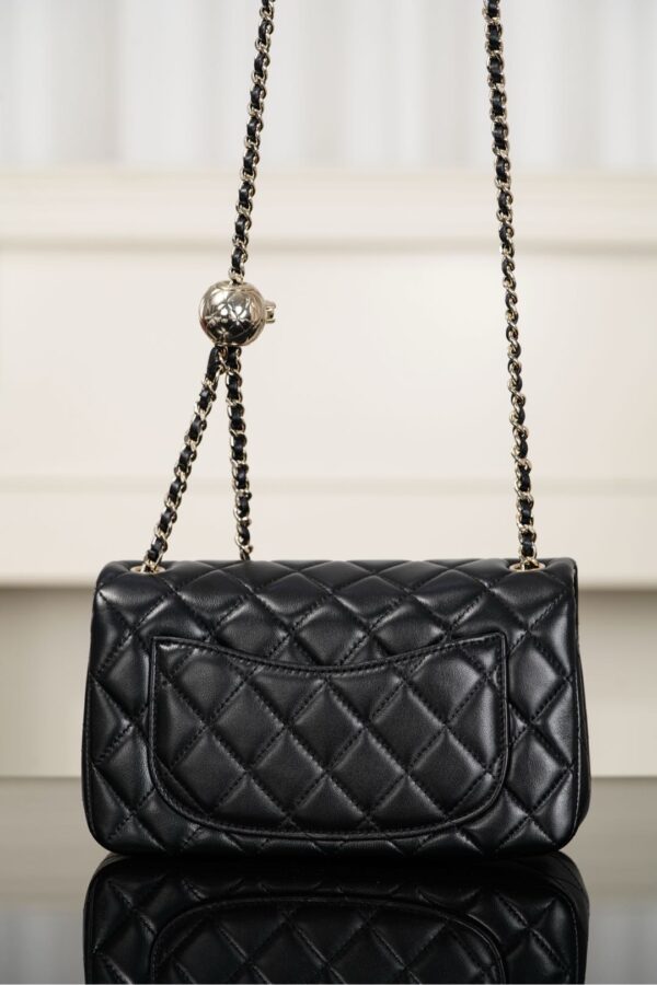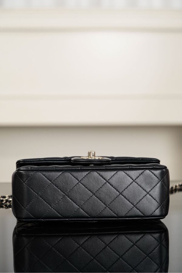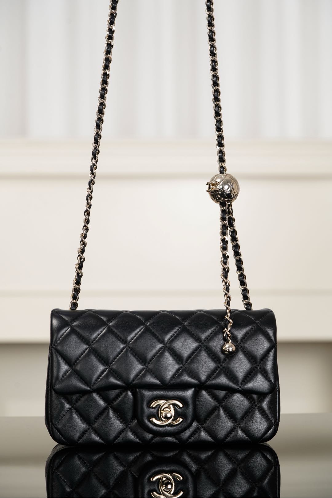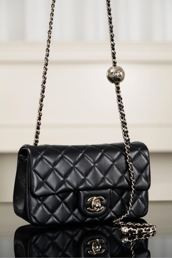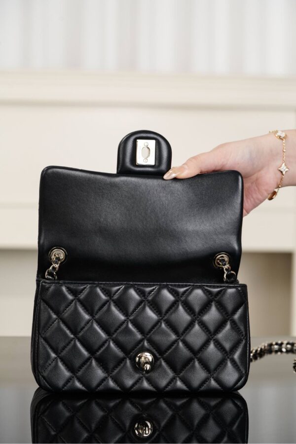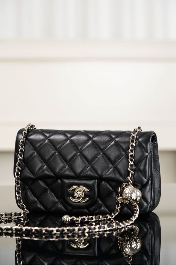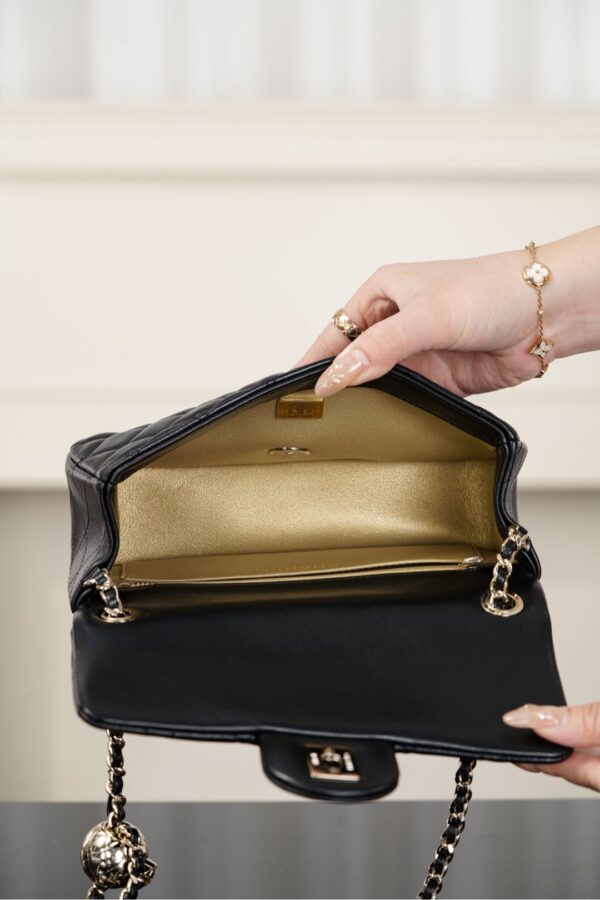 부드럽고 섬세한 소가죽 소재로 제작된 샤넬 25k 미니백입니다. 고급스러운 블랙과 골드 조합이 클래식한 매력을 더해줍니다.