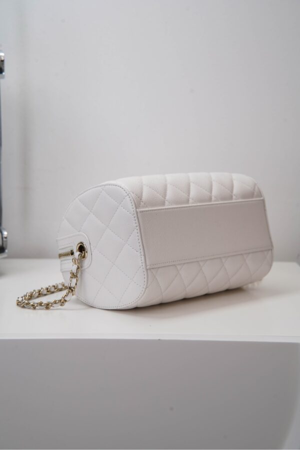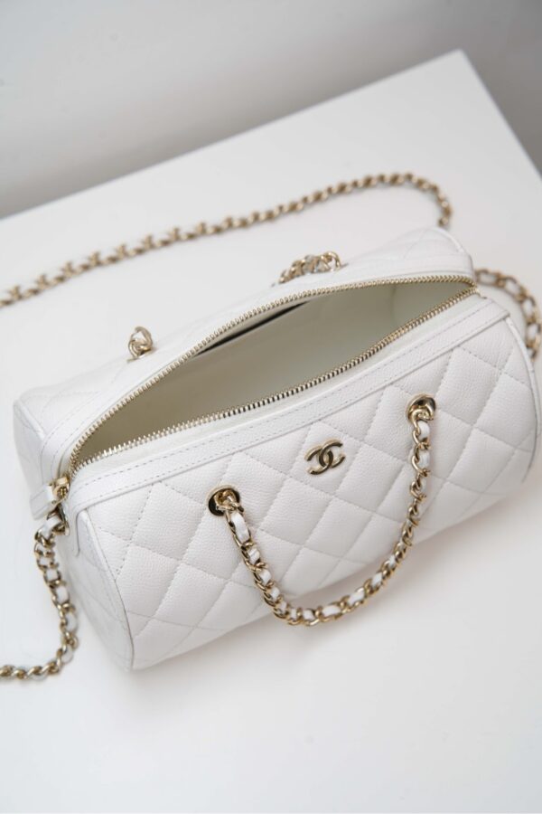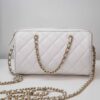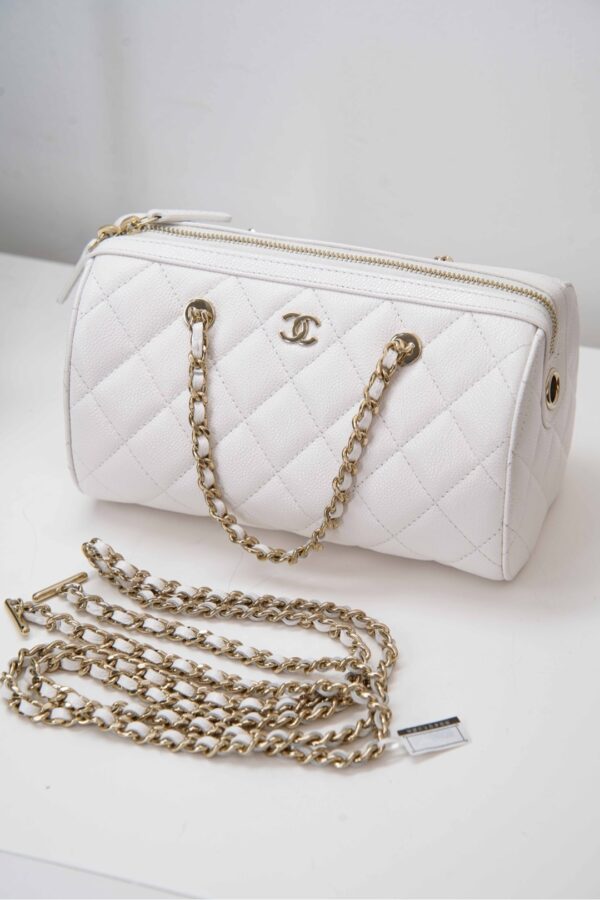 작지만 넉넉한 수납 공간을 제공하며, 손으로 들거나 어깨에 걸쳐 착용할 수 있습니다. 분리 가능한 긴 체인 스트랩으로 다양한 스타일링이 가능합니다.
