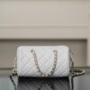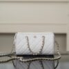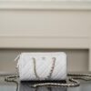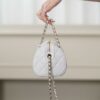 작지만 넉넉한 수납 공간을 제공하여 실용적이며, 손잡이와 긴 체인 스트랩으로 다양한 착용 방식이 가능합니다.