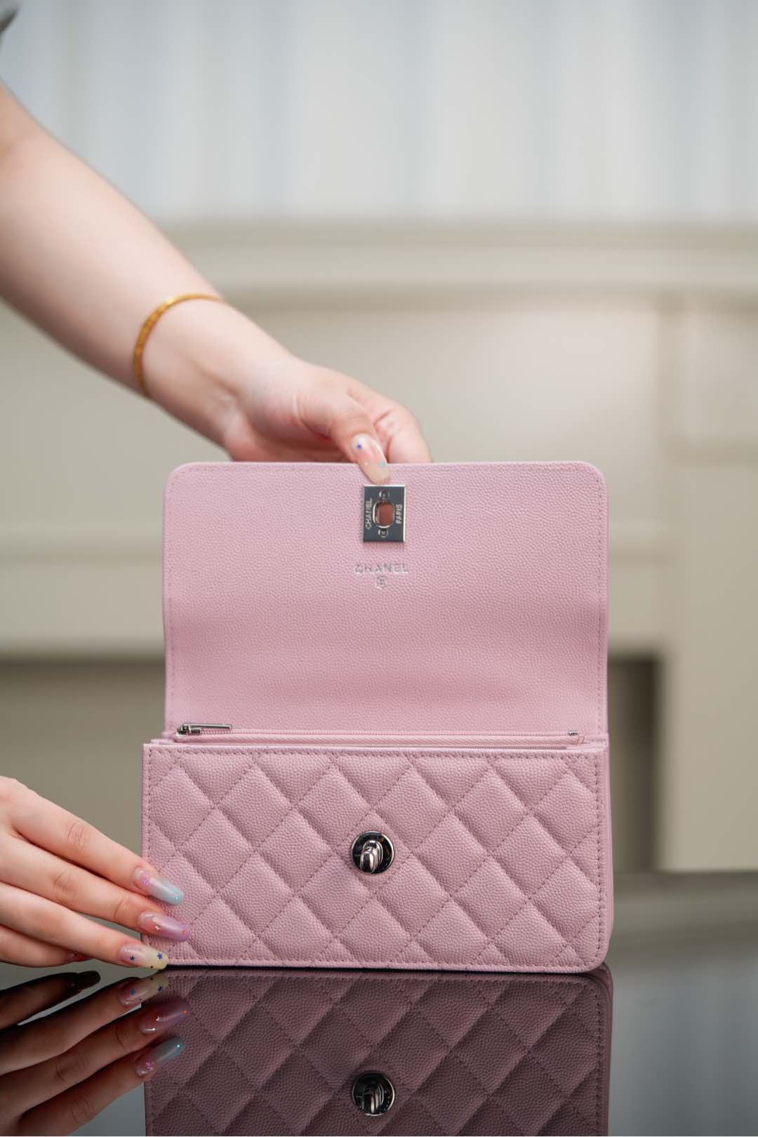 샤넬 (팬더) 25P 숨은 손잡이 오르골백 연핑크 샤넬 (팬더) 25P 숨은 손잡이 오르골백 연핑크