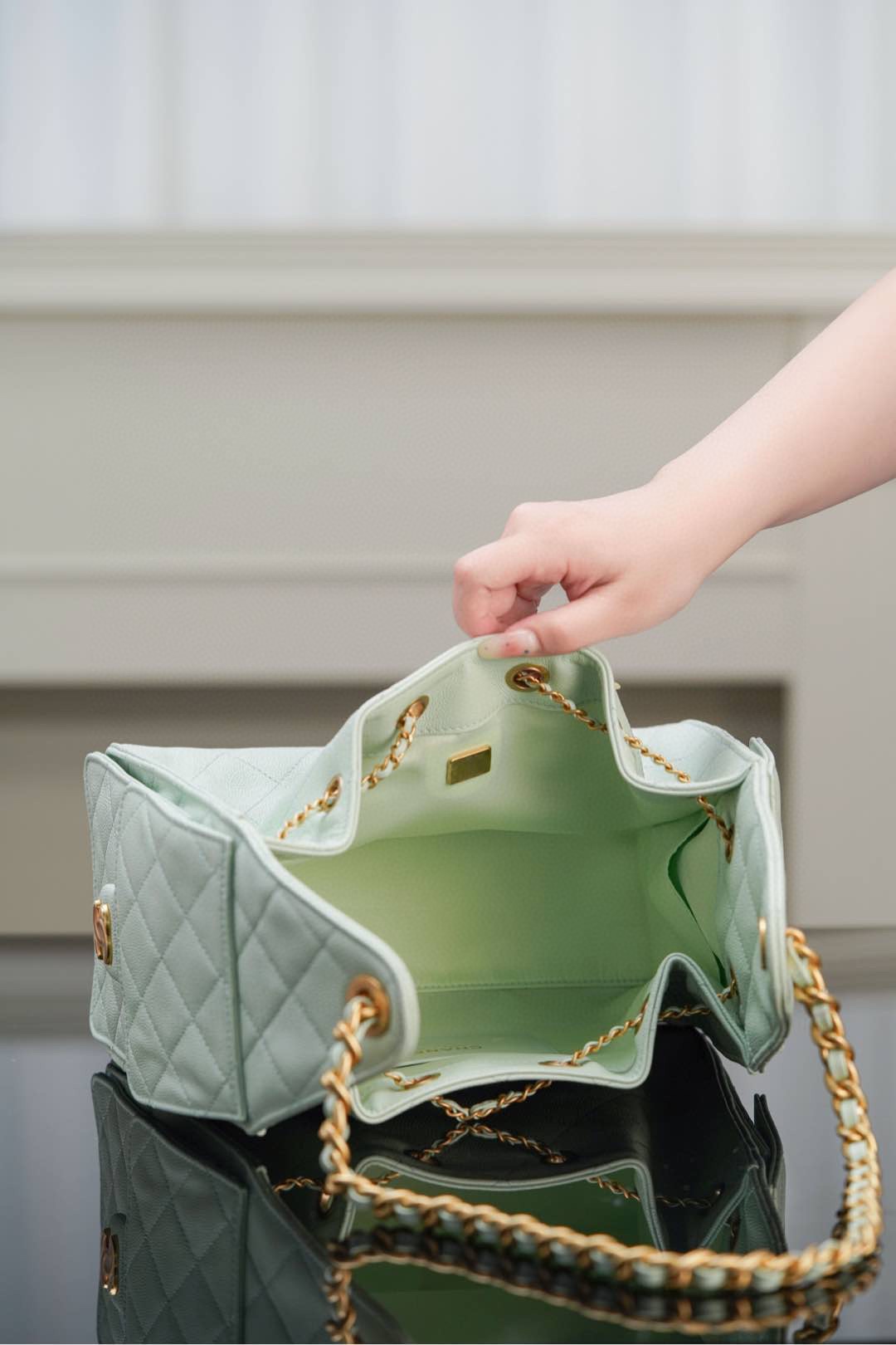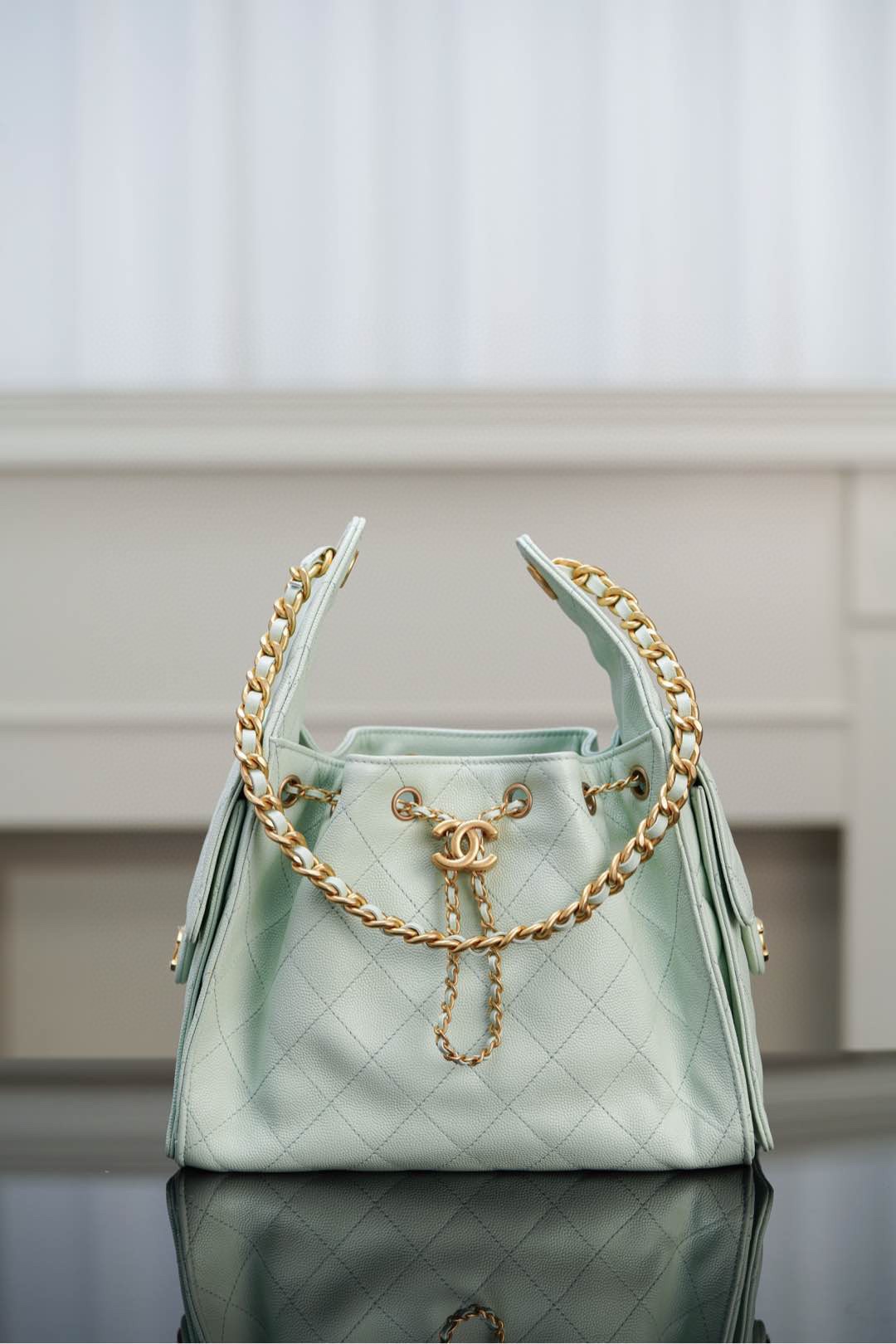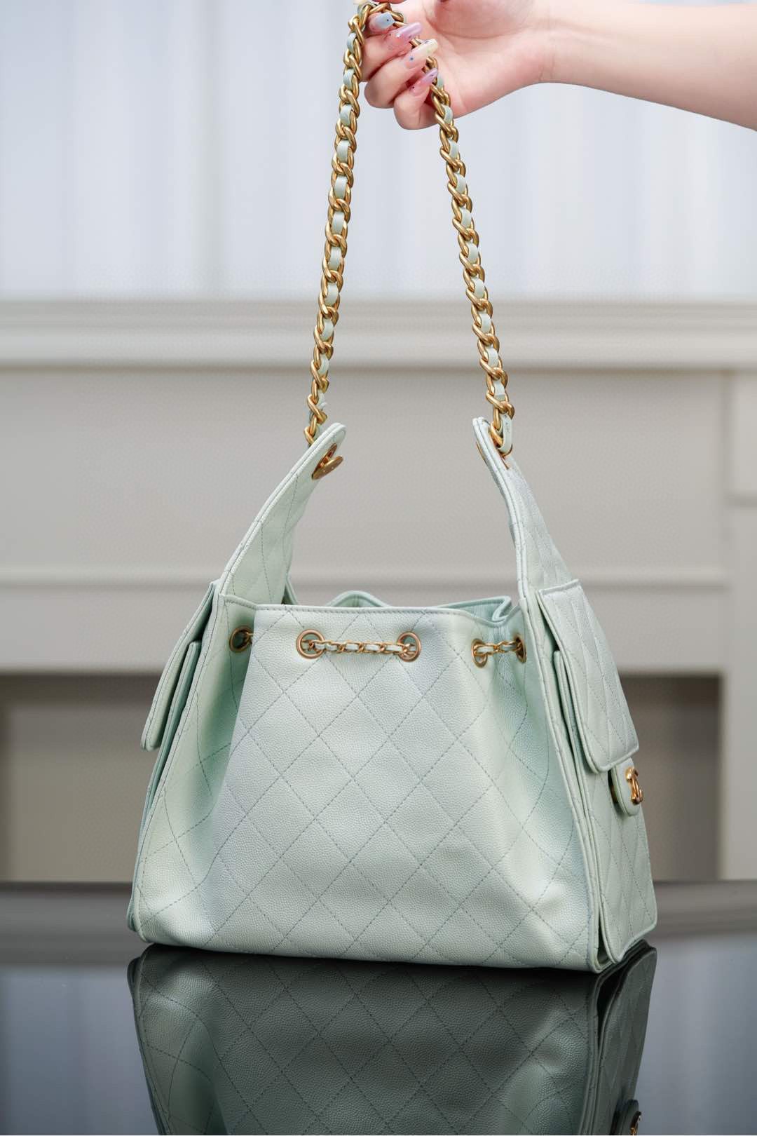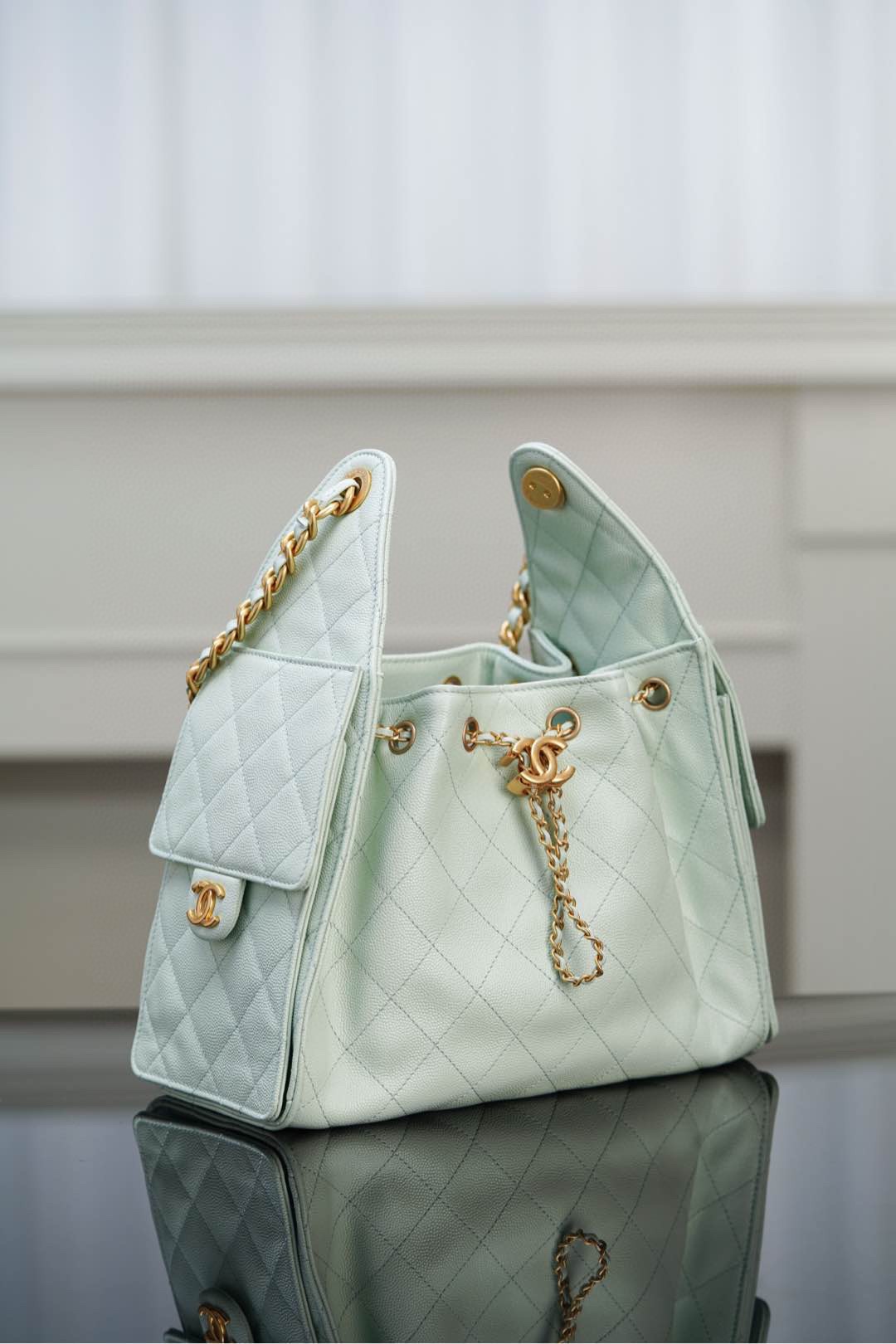 이번 시즌의 핫 아이템인 호보백은 상큼한 민트 그린 컬러로 여름의 더위를 시원하게 날려줍니다.