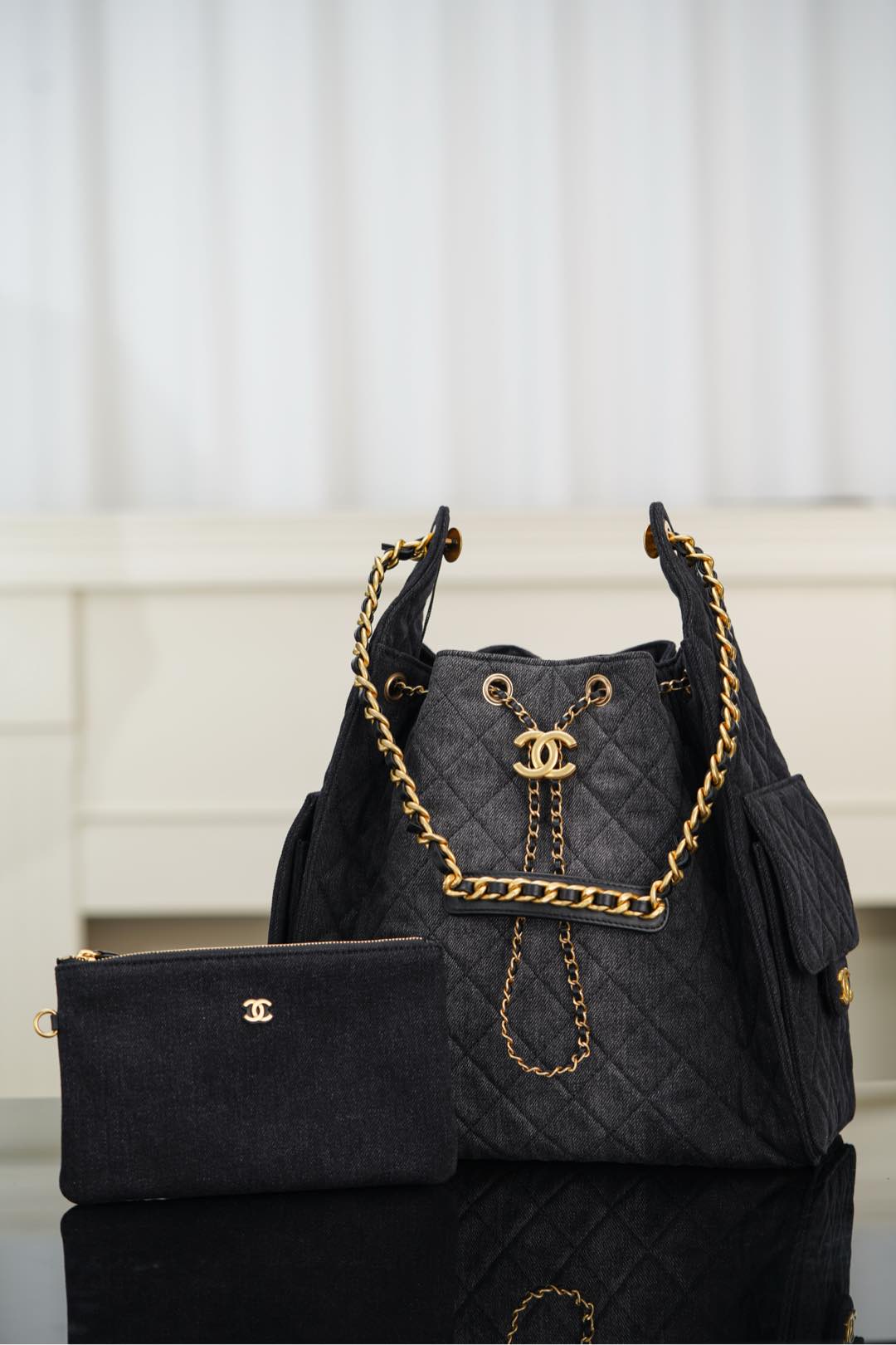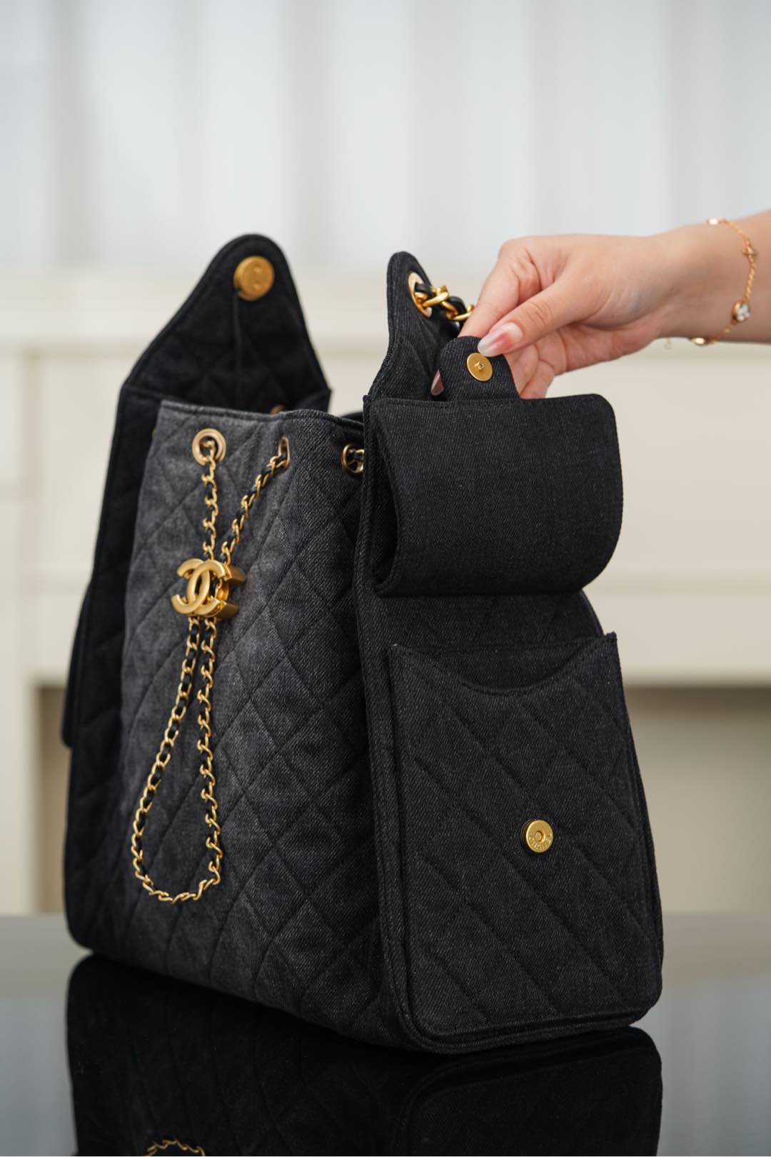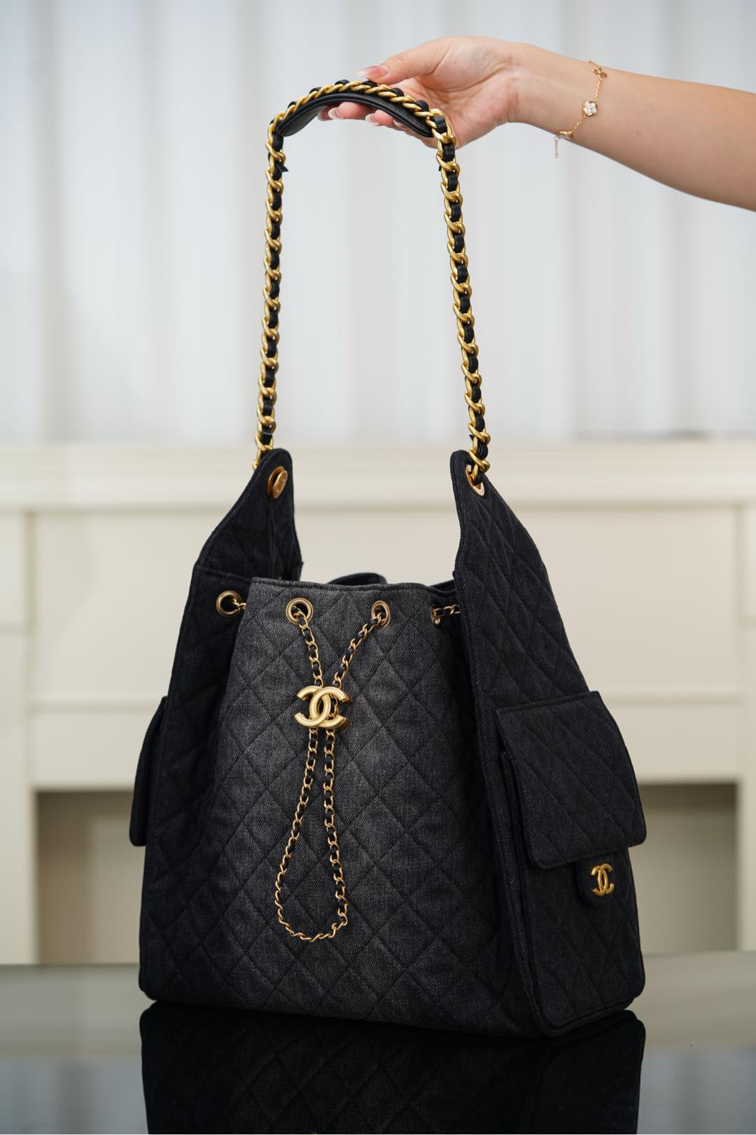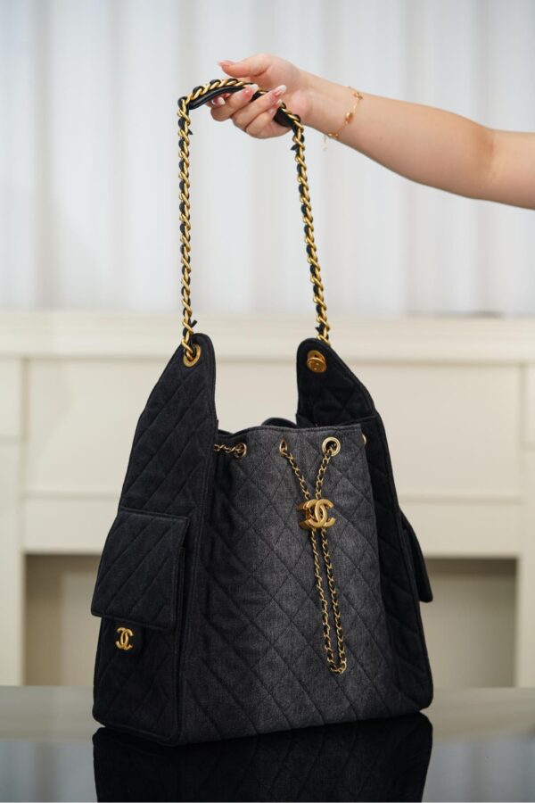 샤넬 (팬더) 25s 호보 백 대형 블랙 소가죽