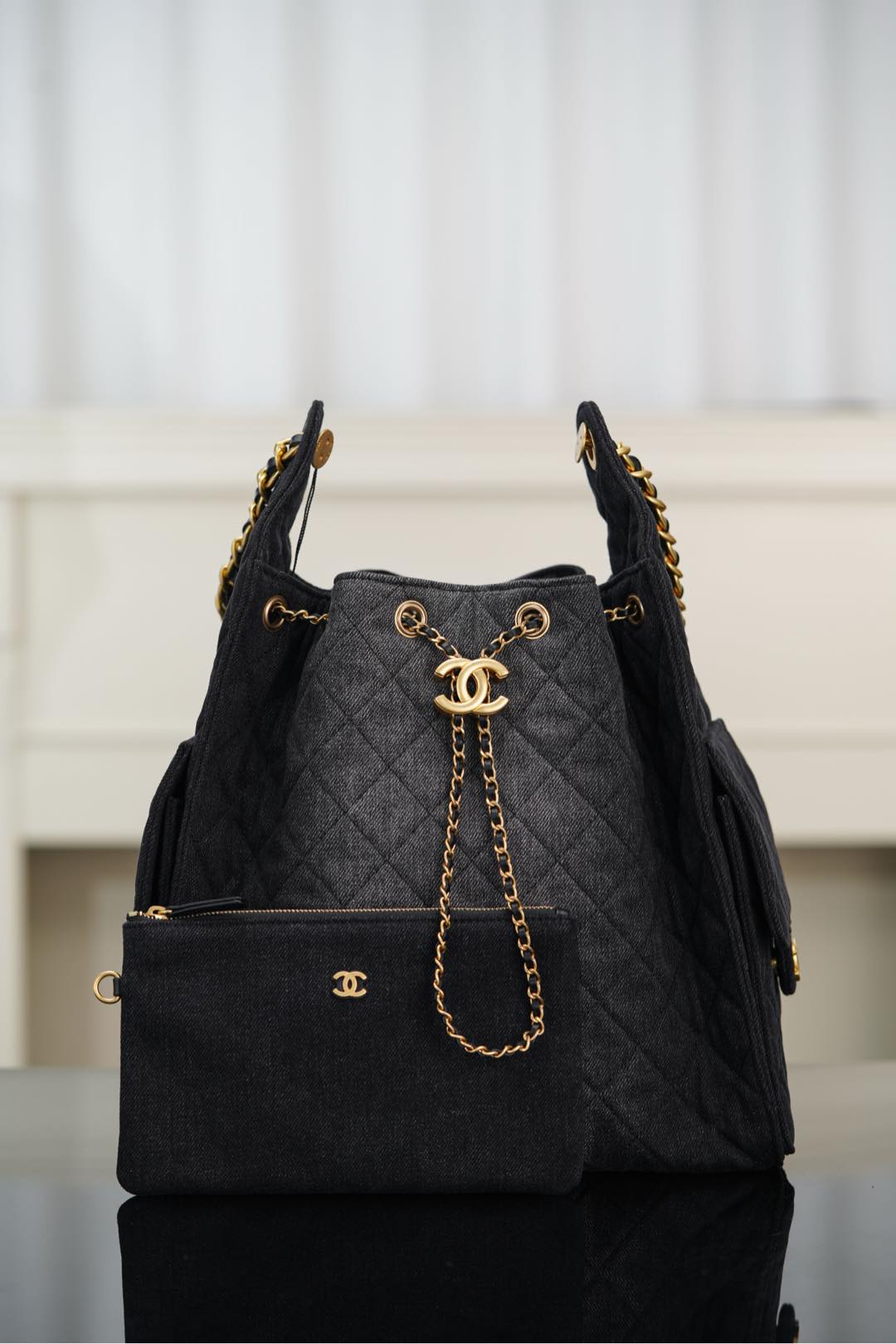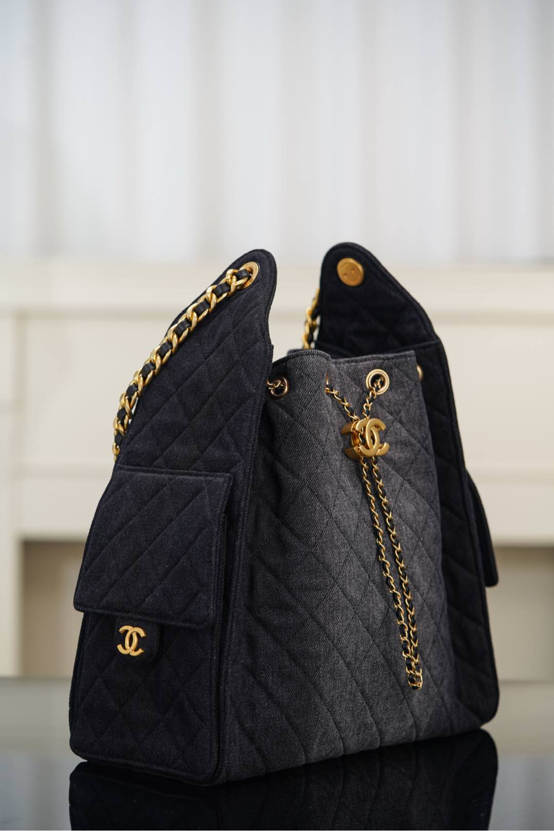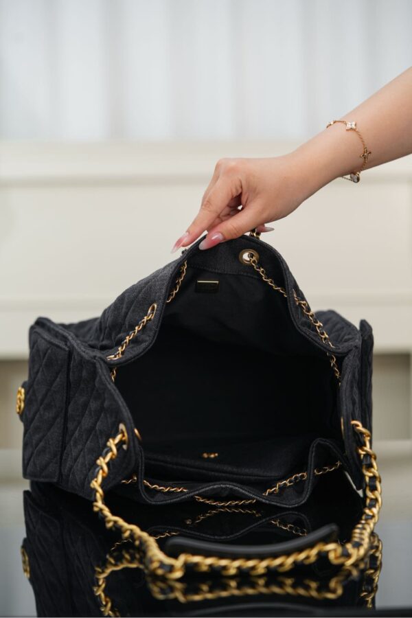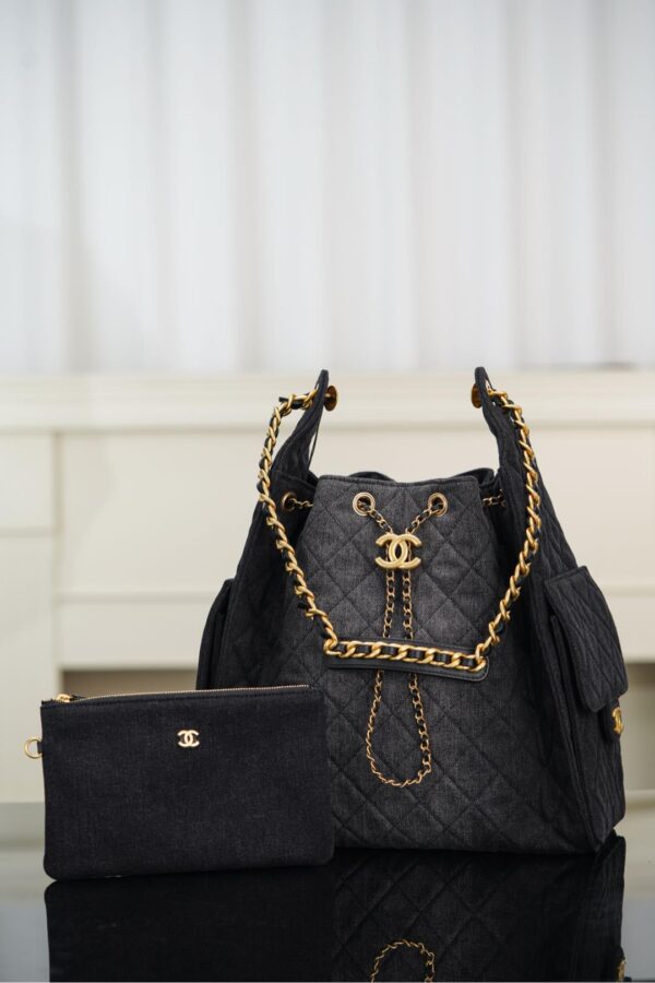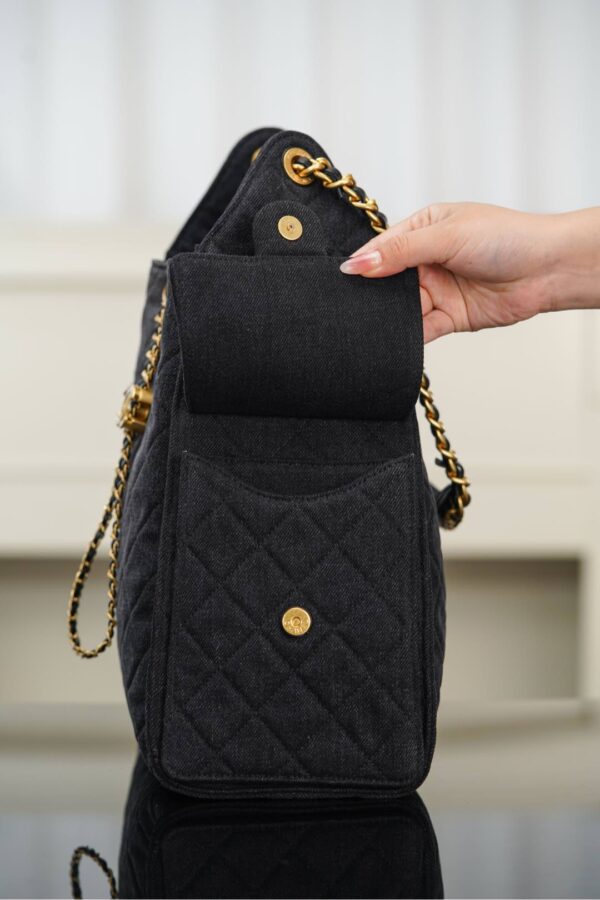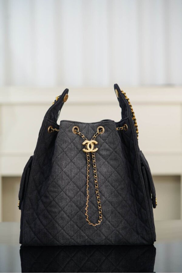 물세탁 가능한 데님 소재로, 거친 느낌과 우아함을 동시에 갖춘 디자인입니다. 중앙에 위치한 금속 더블 C 로고가 포인트로, 캐주얼하면서도 젊은 감각을 선사합니다.