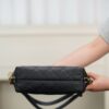 샤넬의 25ss 쇼룸 더블 숄더백은 심플하면서도 세련된 디자인이 돋보입니다. 대형 다이아몬드 퀼팅 패턴이 특징으로, 부드러운 소가죽 소재로 제작되어 고급스러운 느낌을 줍니다.