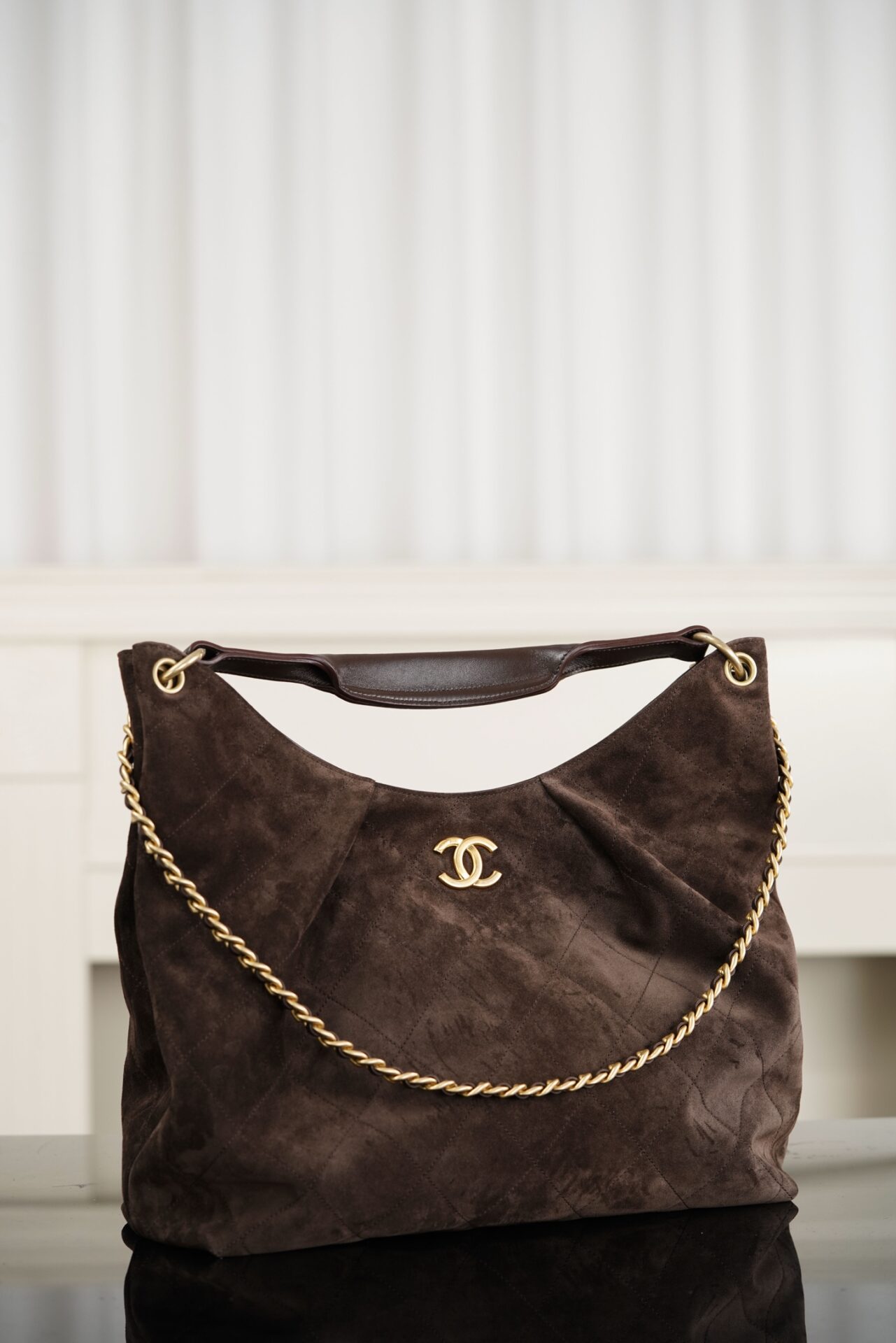 샤넬 (팬더) 26C 새봄 신상 히피 호보 맥시 스웨이드 브라운