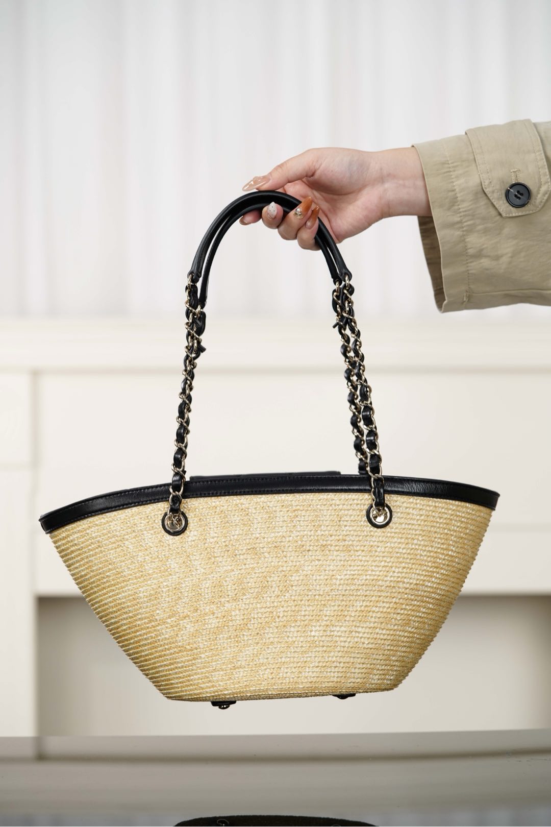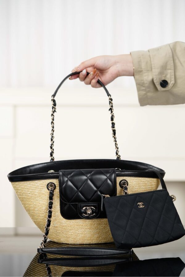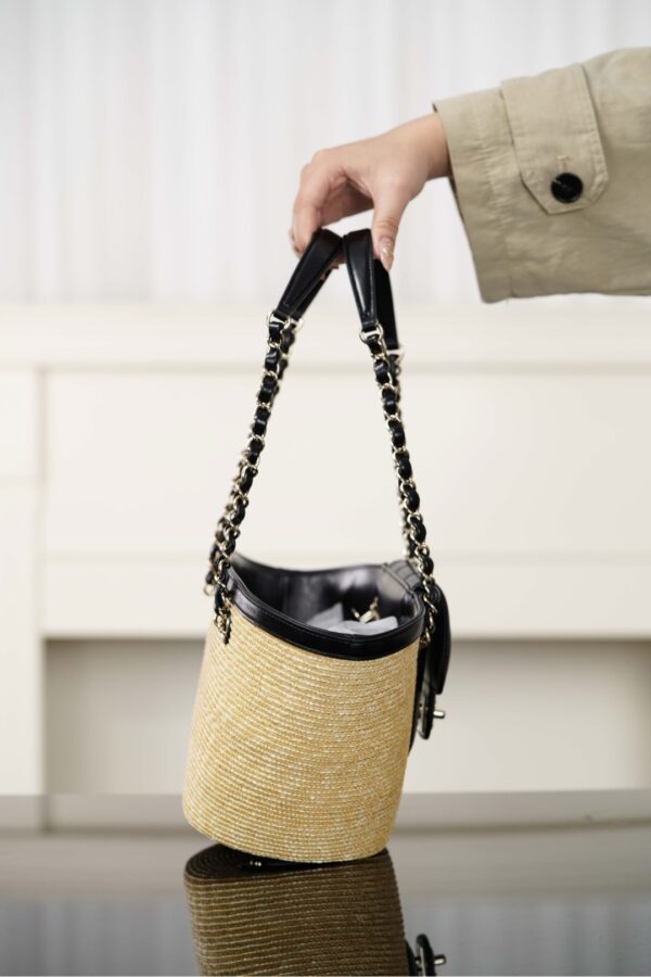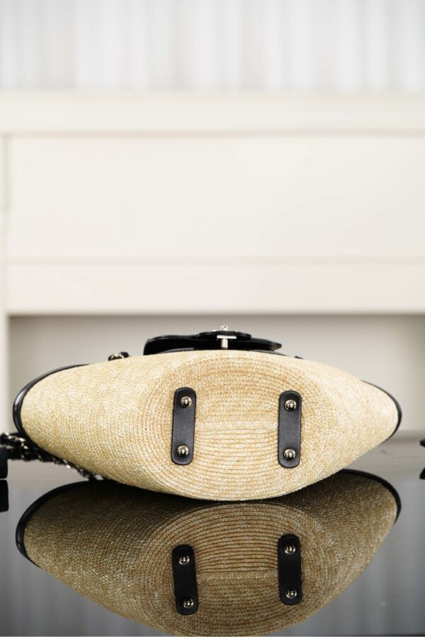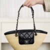 자연스러운 매력을 지닌 손으로 짠 바구니 백입니다. 천연 밀짚으로 정교하게 제작되어 여름 휴가에 완벽한 선택이 될 것입니다.