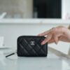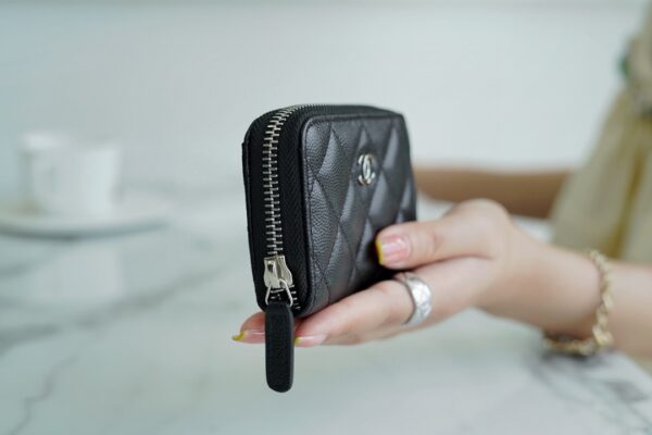 고급스러운 질감의 소가죽으로 제작된 샤넬 CF 시리즈 지퍼 동전 카드 지갑입니다.