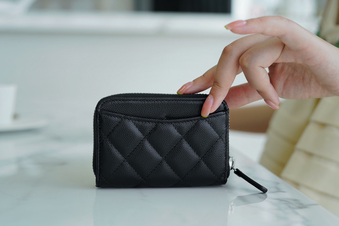 고급스러운 질감의 소가죽으로 제작된 샤넬 CF 시리즈 지퍼 동전 카드 지갑입니다.