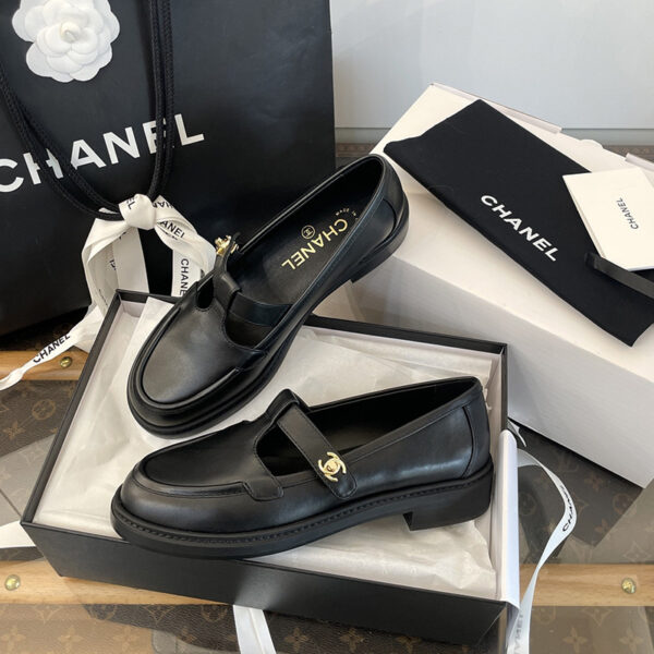 샤넬 25K 카프스킨 T 스트랩 턴락 금장 CC로고 로퍼