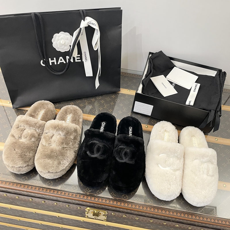 샤넬 CC로고 시어링 뮬 슬리퍼 샤넬 CC로고 시어링 뮬 슬리퍼