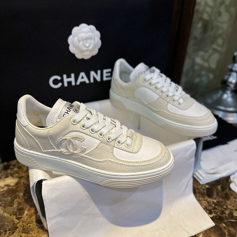 • 샤넬 CC로고가 디자인된 스니커즈로, 테니스화 스타일을 적용한 운동화입니다.