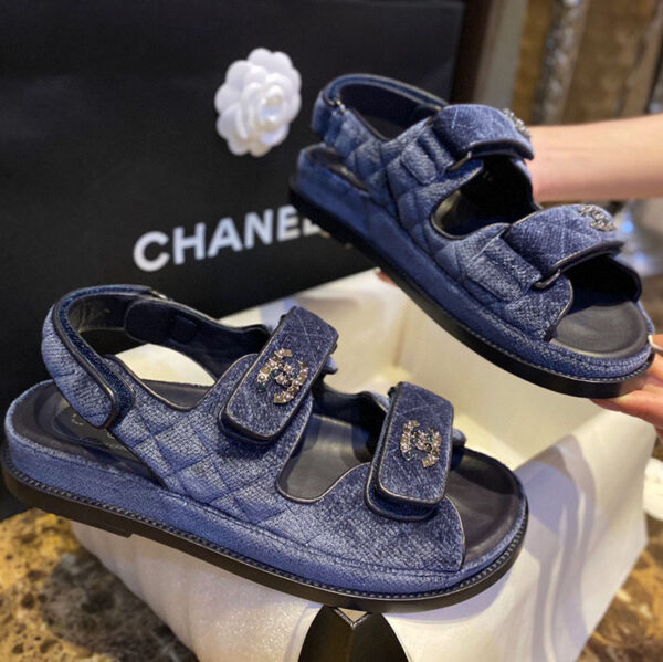 샤넬 [TJ공장] 데님 벨벳 벨크로 샌들