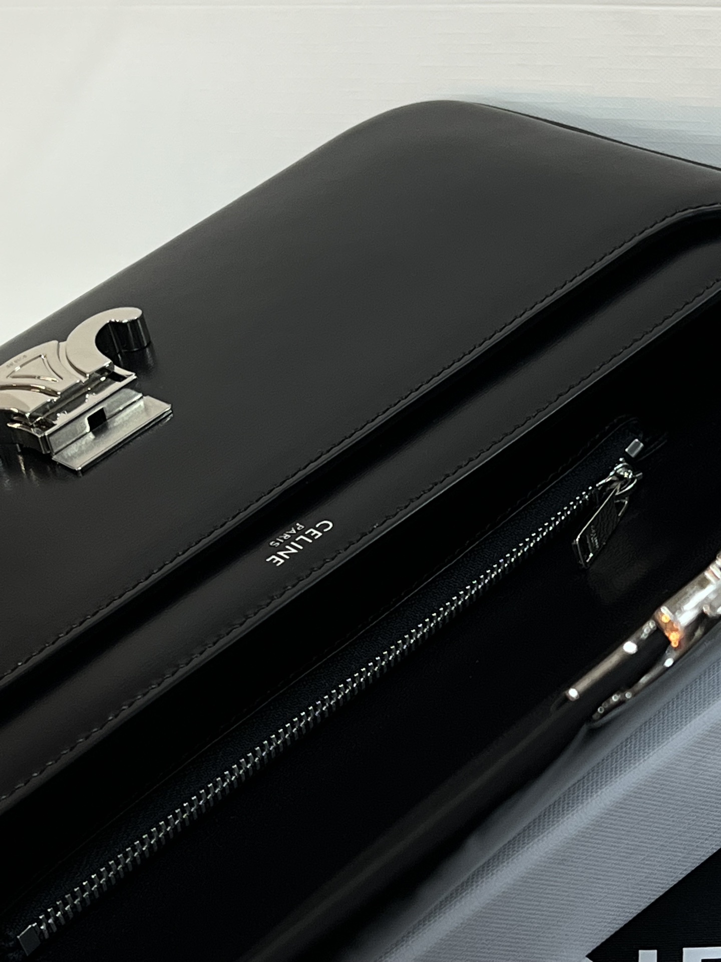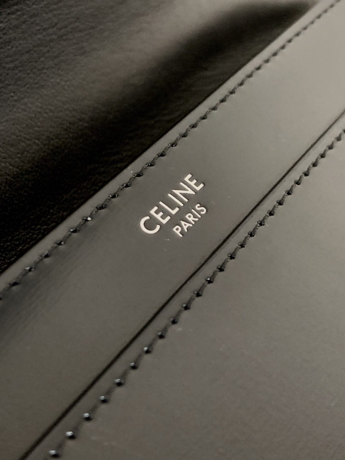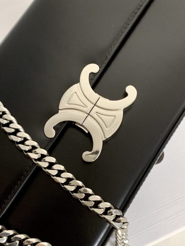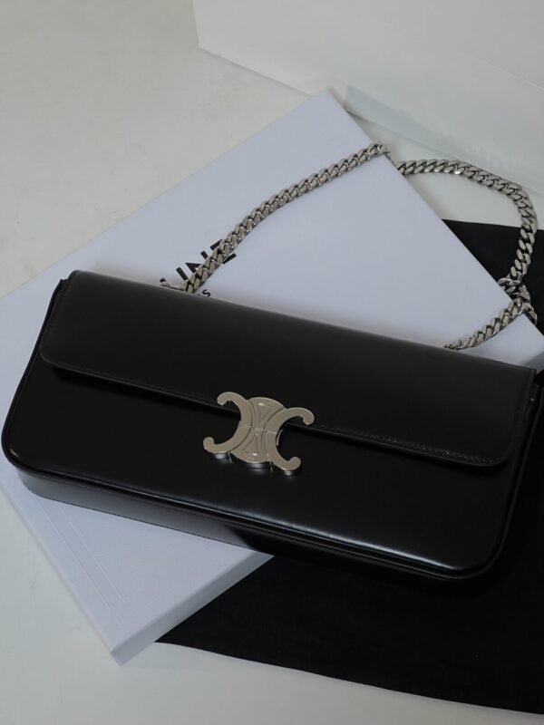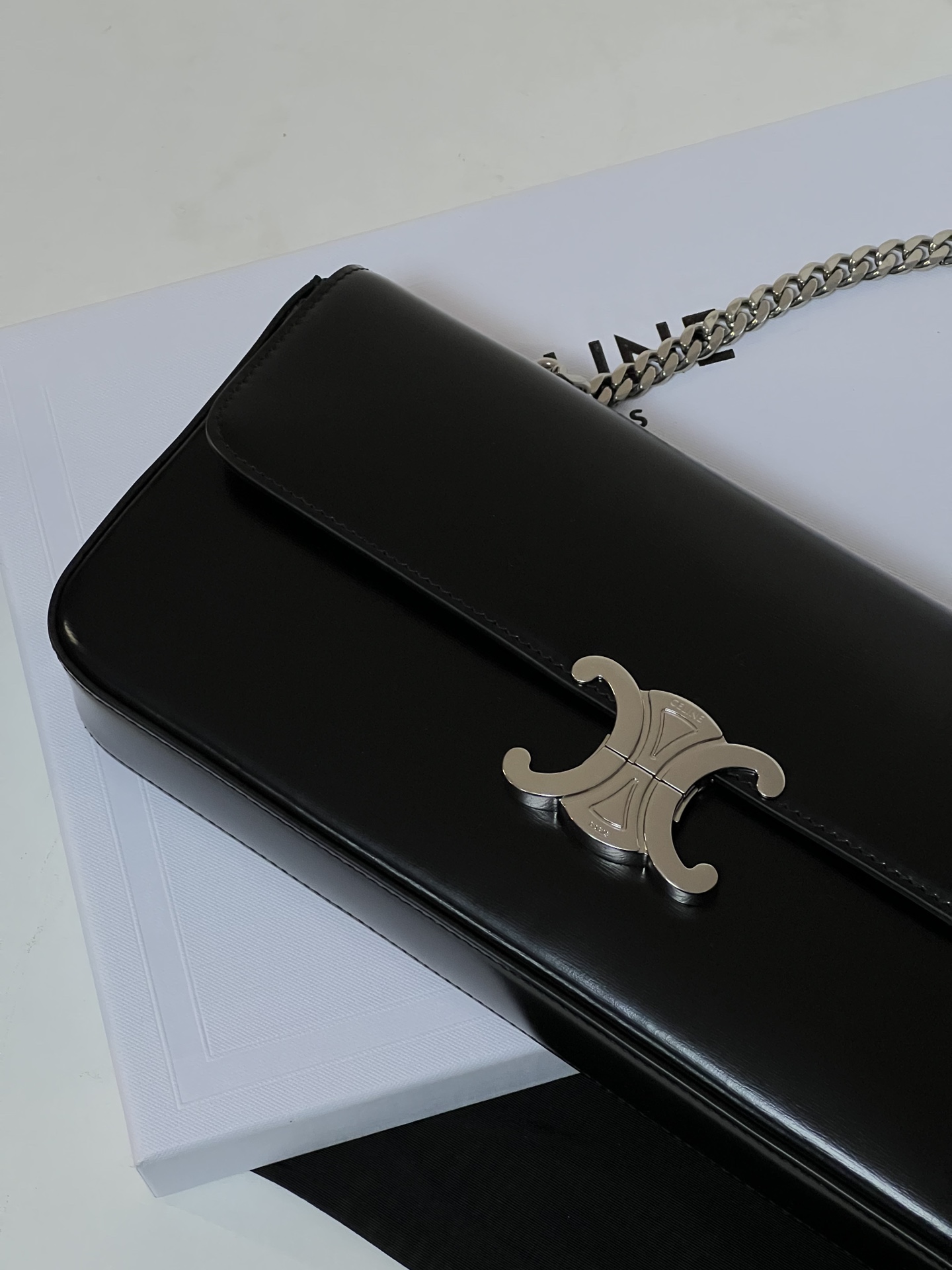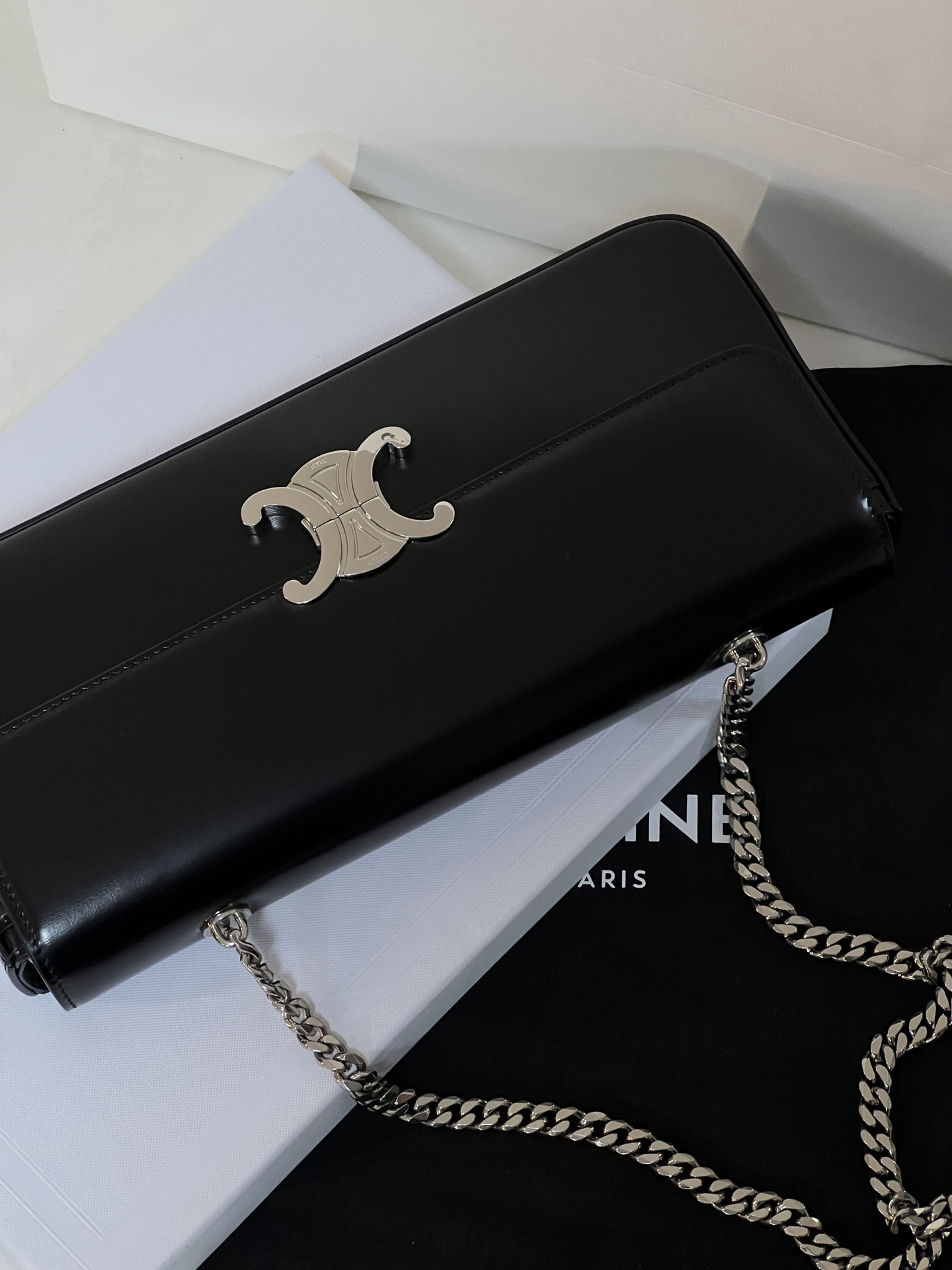 셀린느의 긴 체인 어깨백은 세련된 블랙 컬러로 어떤 스타일에도 잘 어울립니다.