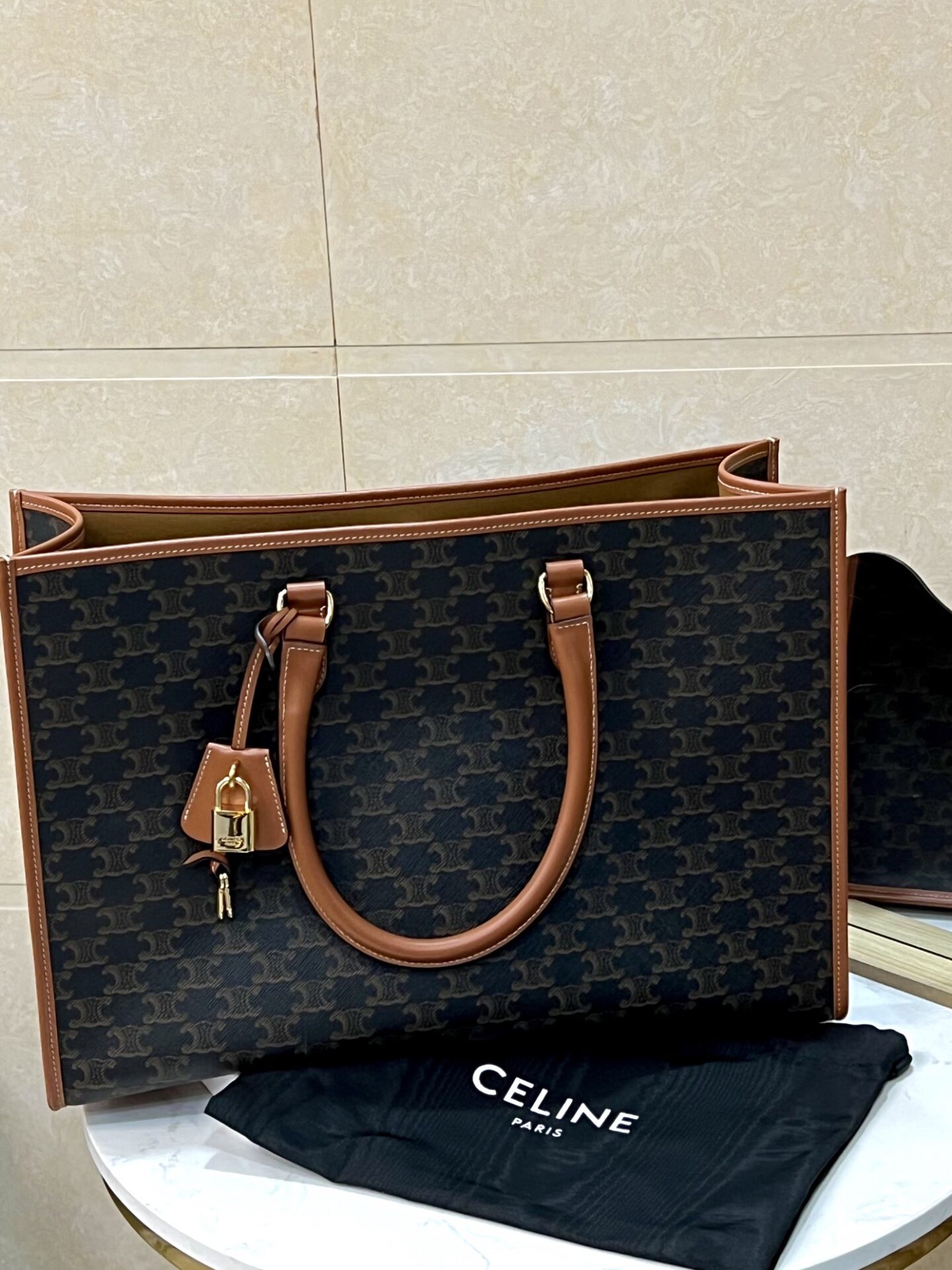 셀린느의 대용량 쇼핑백은 빈티지한 감성이 돋보이는 디자인으로, 클래식한 매력을 지니고 있습니다.