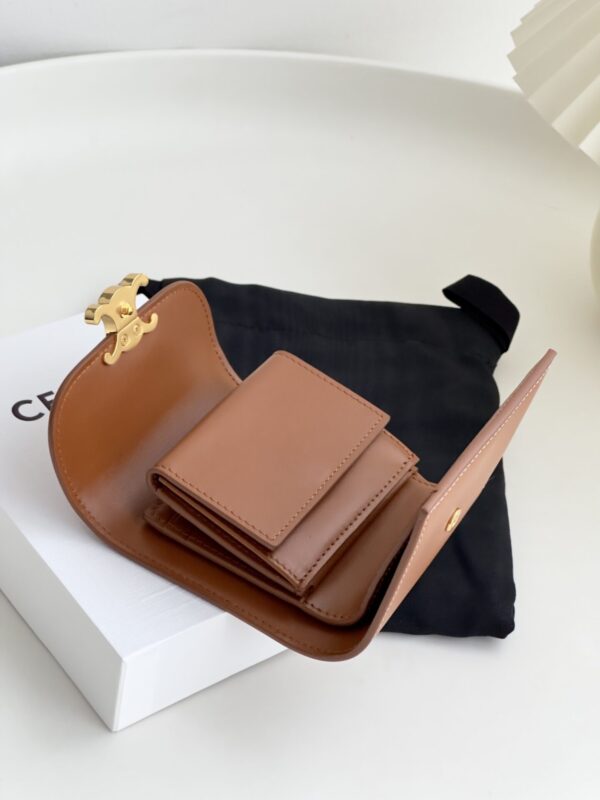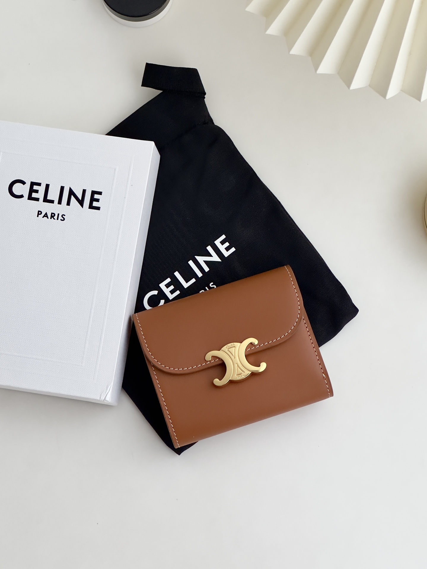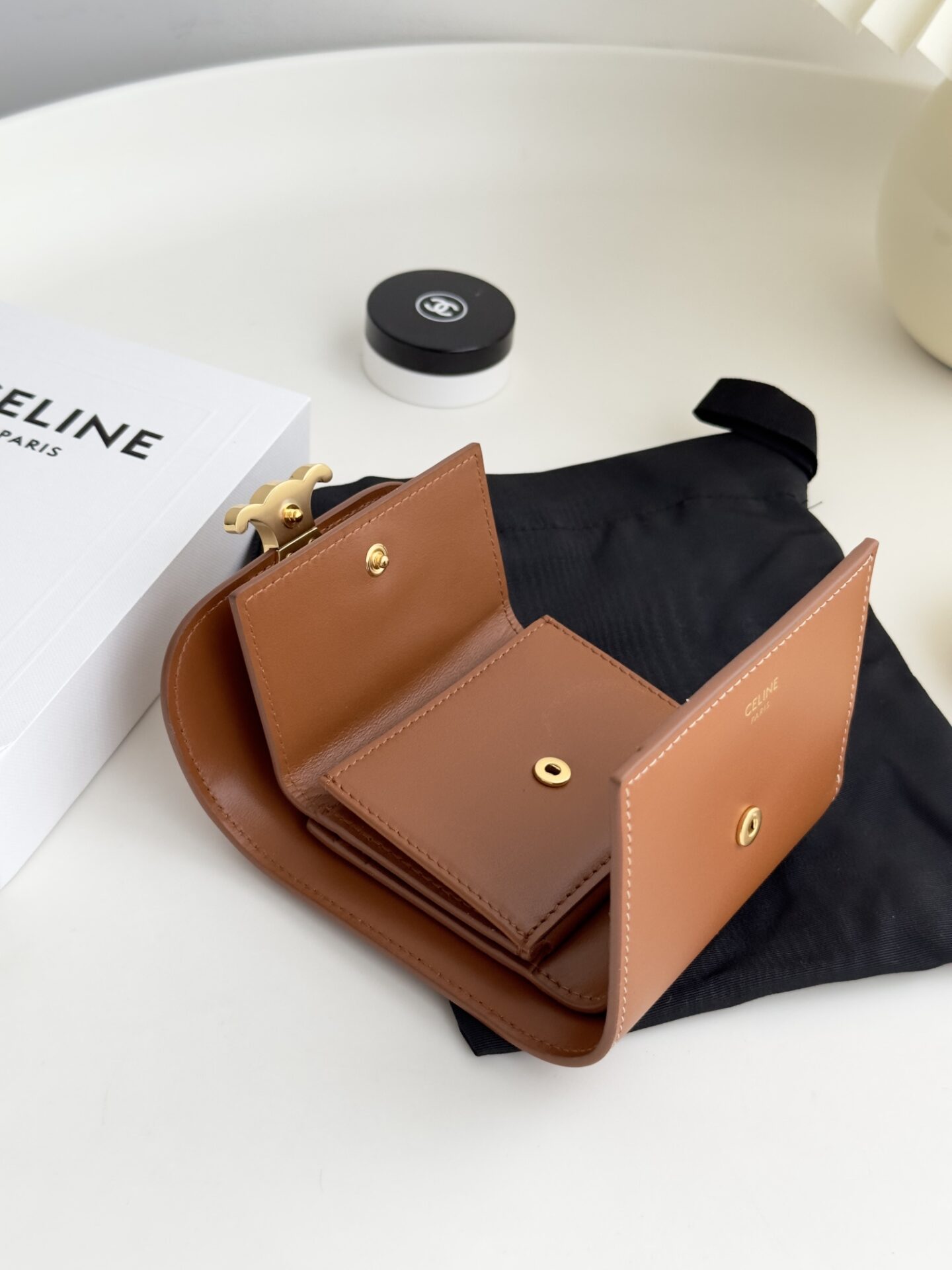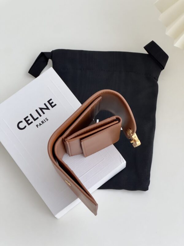 셀린느의 락 재킷 지갑은 고급스러운 브라운 소가죽으로 제작되어 세련된 느낌을 줍니다.