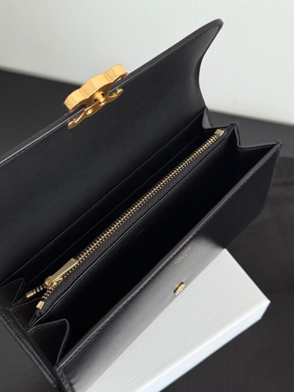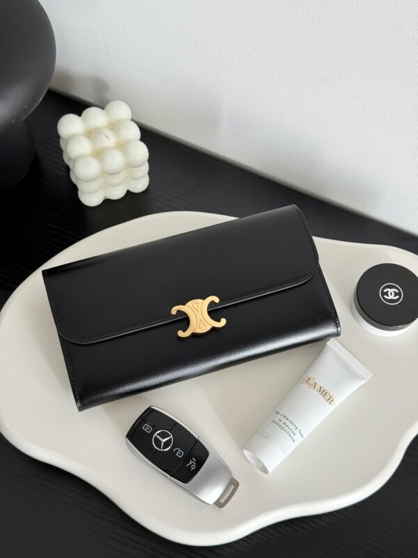 셀린느의 롱 지갑은 고급스러운 소가죽으로 제작되어 내구성이 뛰어납니다.